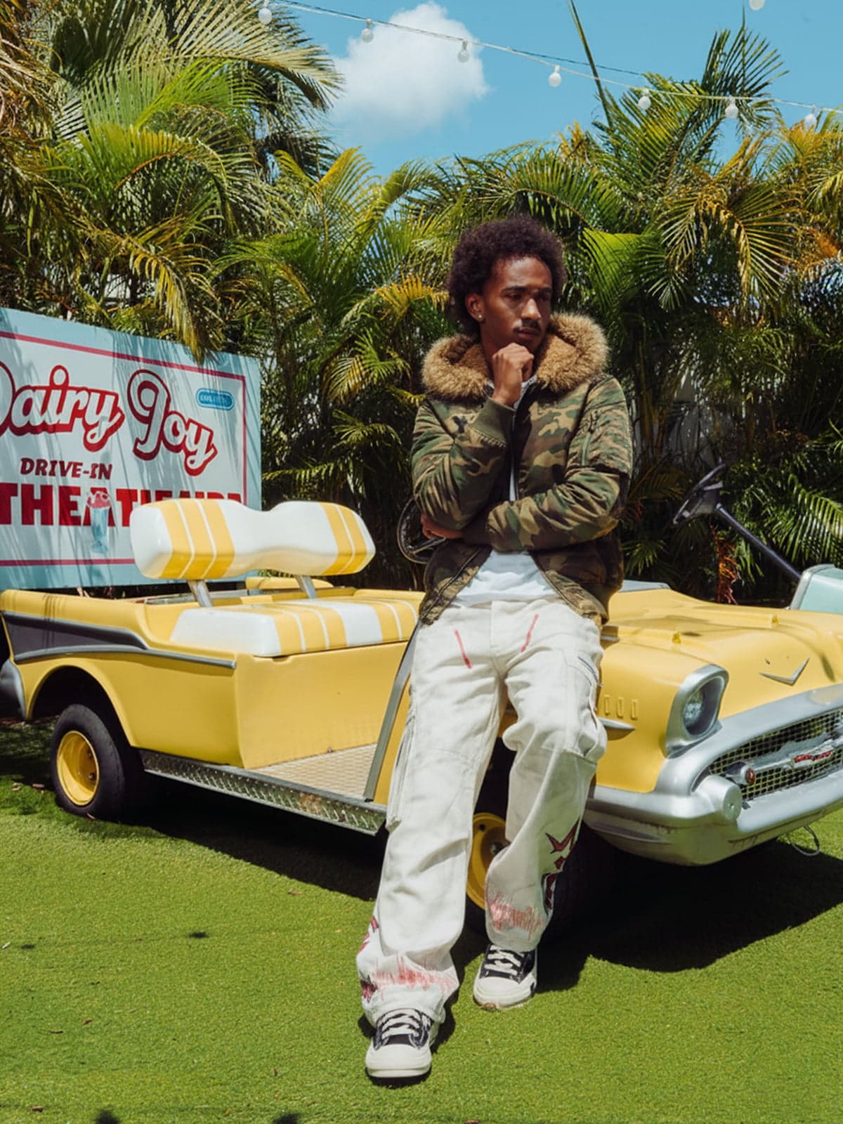 • Designelemente: Tarnmuster, Kapuze mit Kunstpelzfutter, Reißverschluss vorne