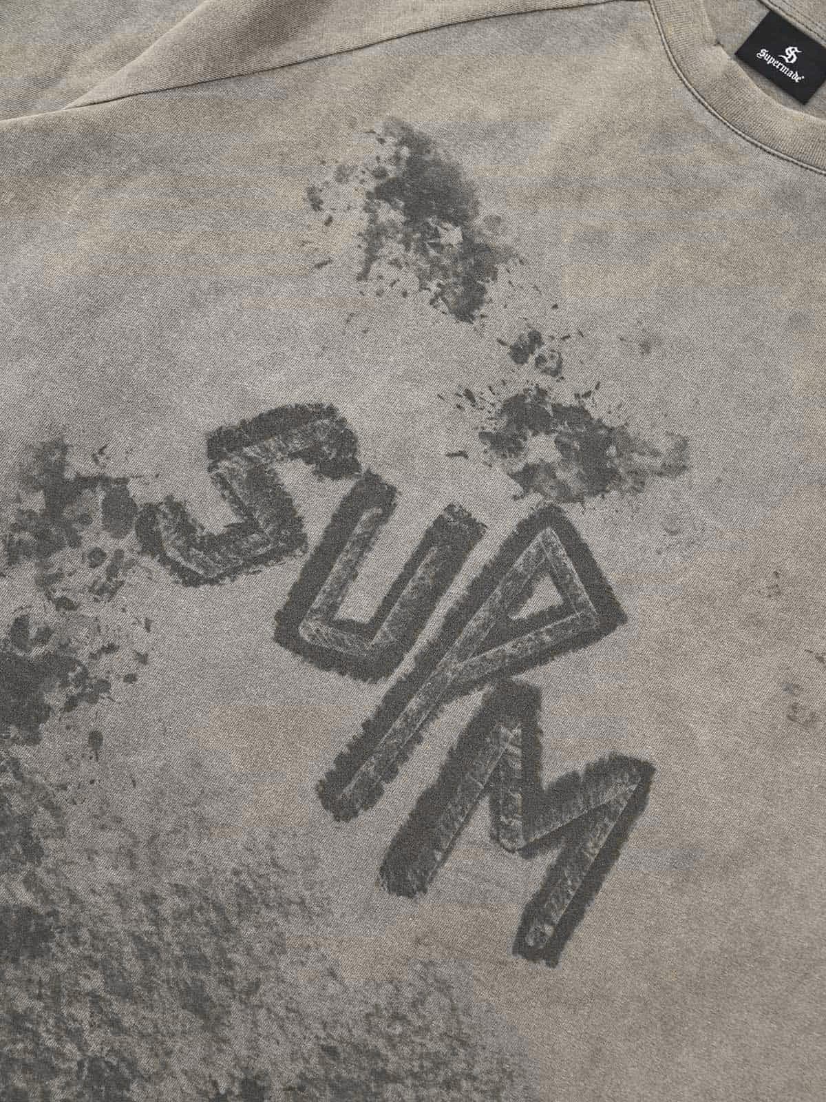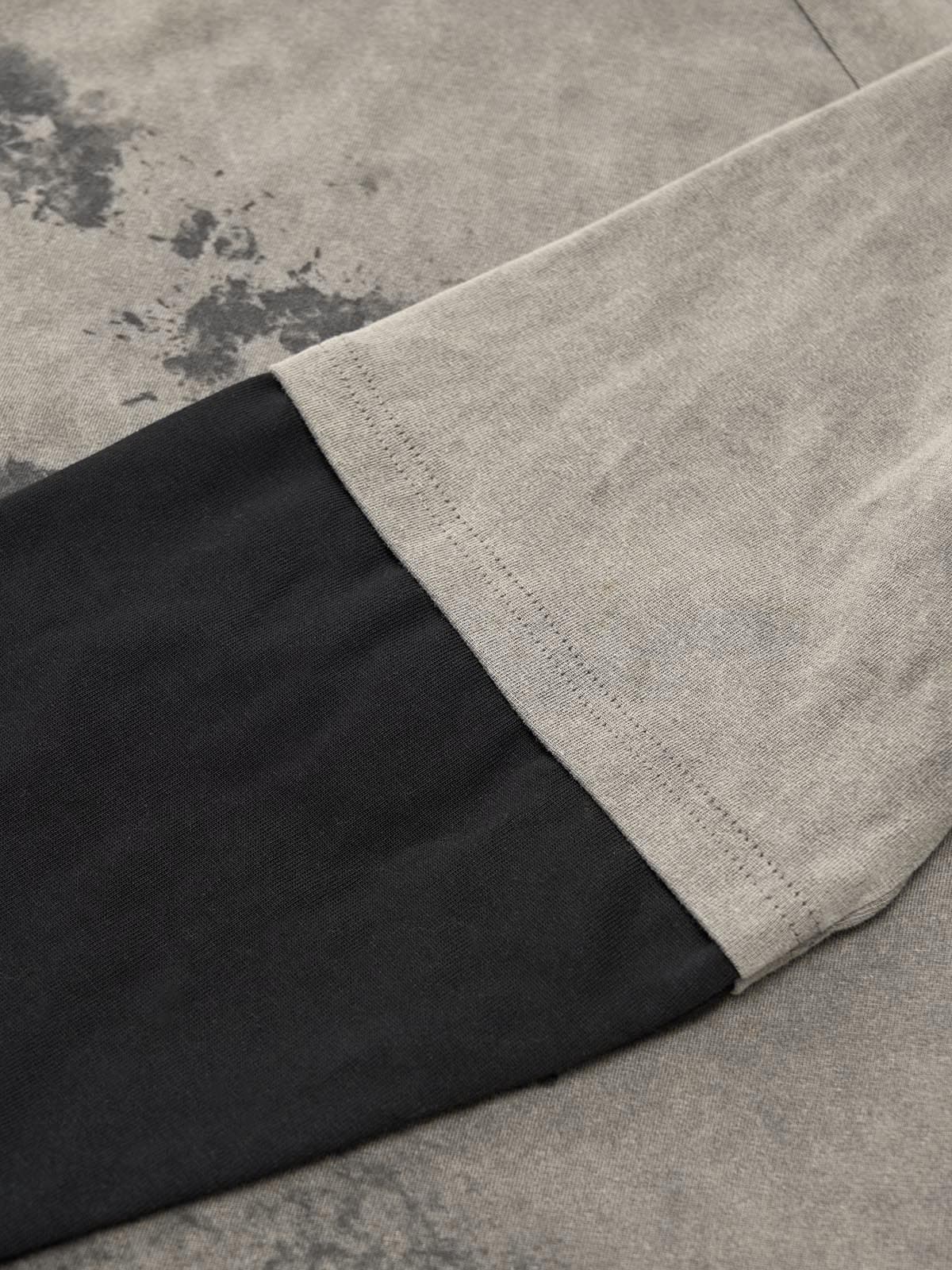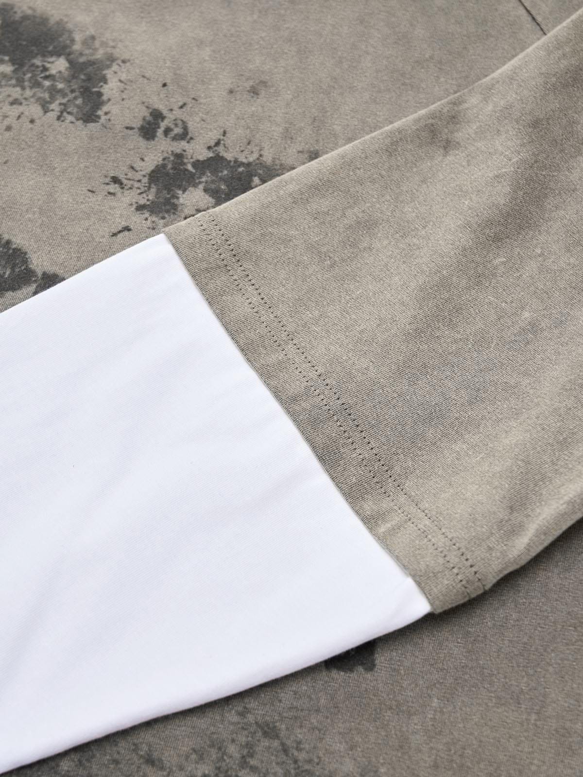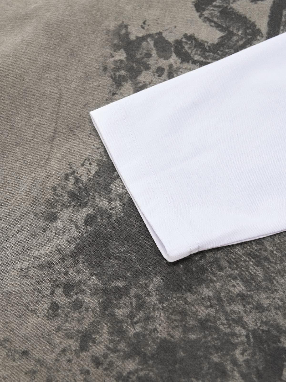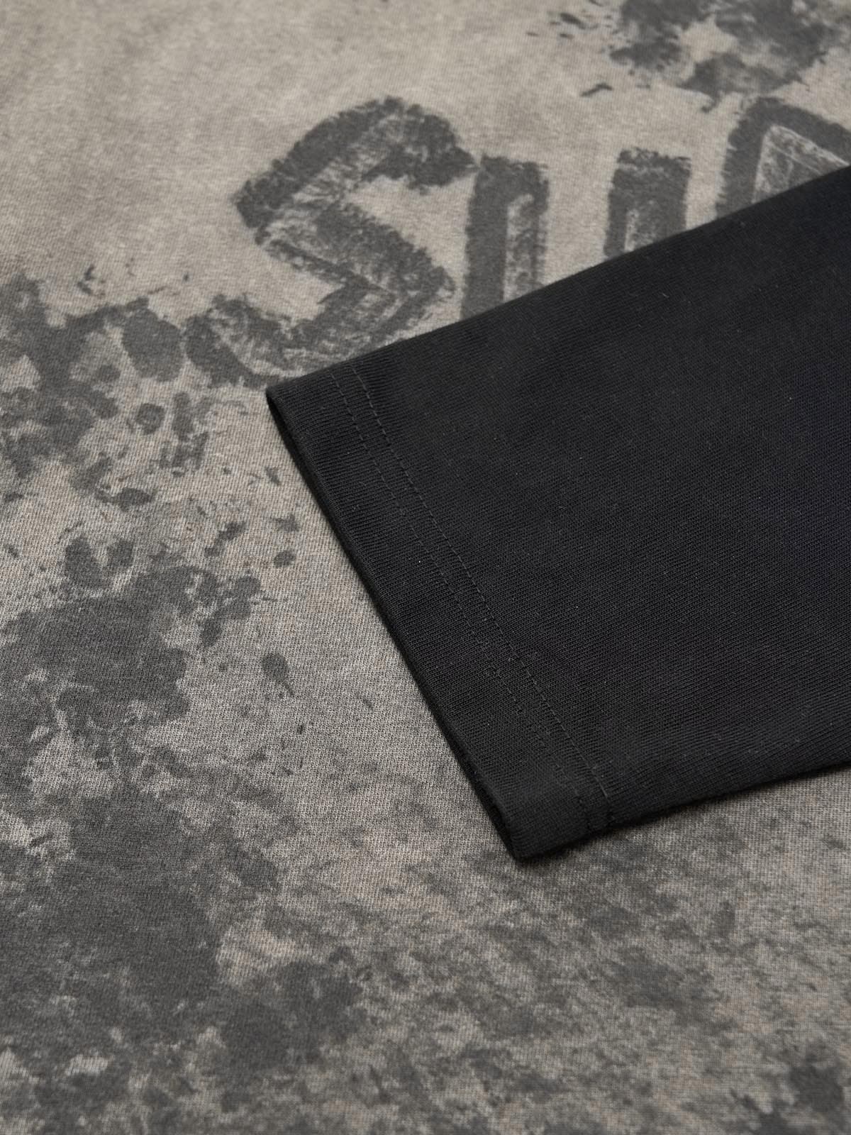 Washed Contrast Color Print Long Sleeve Cotton T-shirt