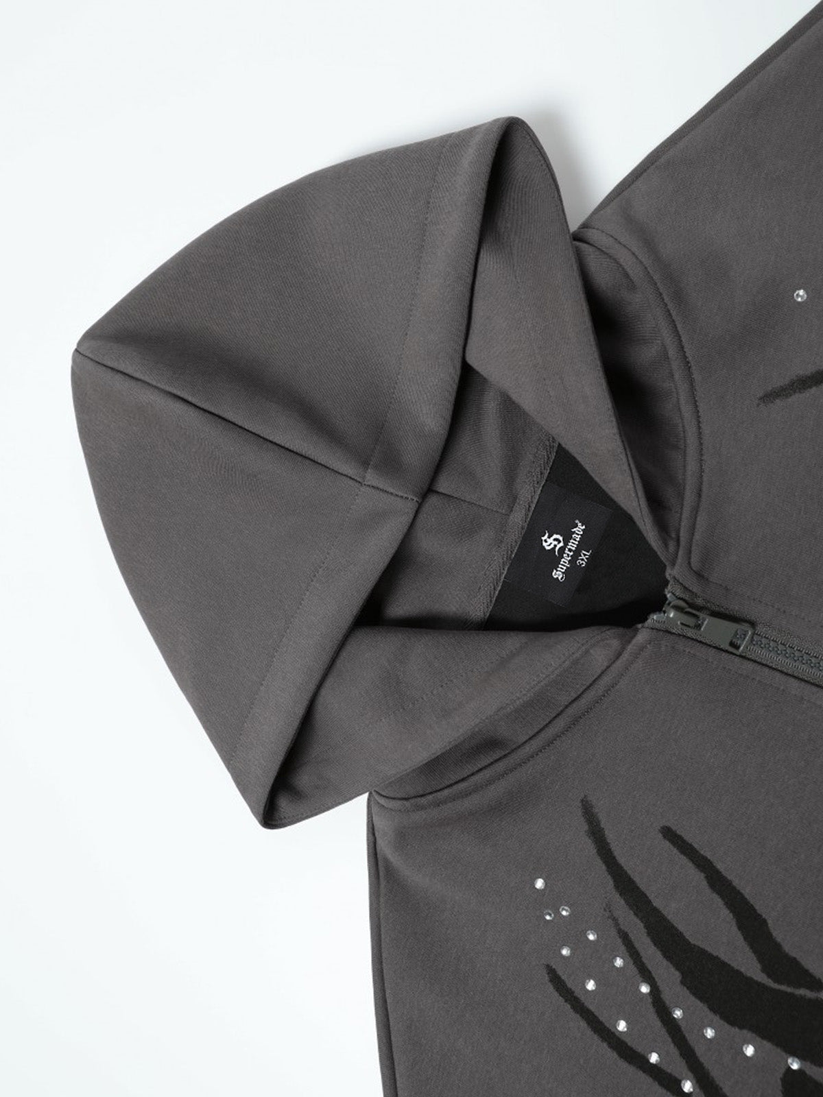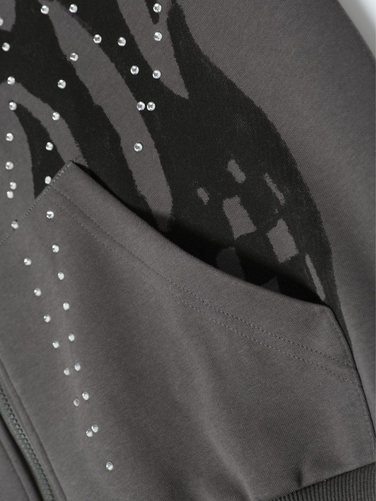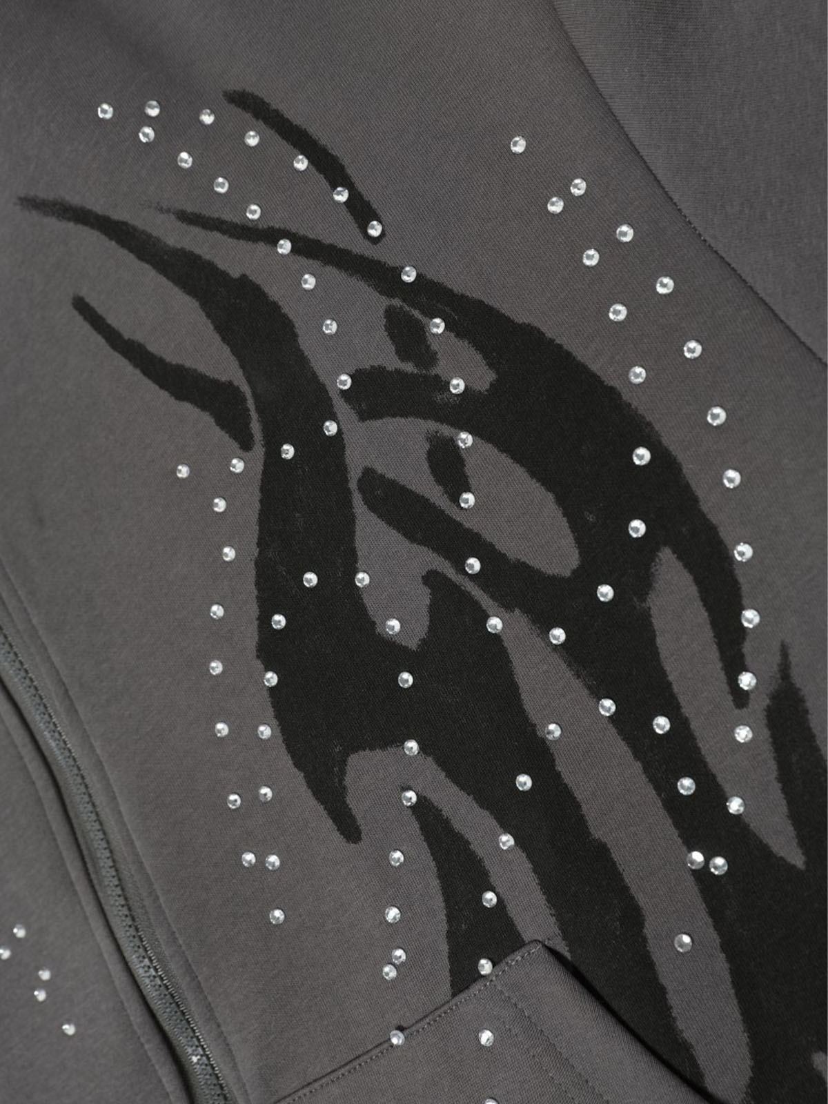 Gothic Flame Rhinestone Zip Up Hoodie