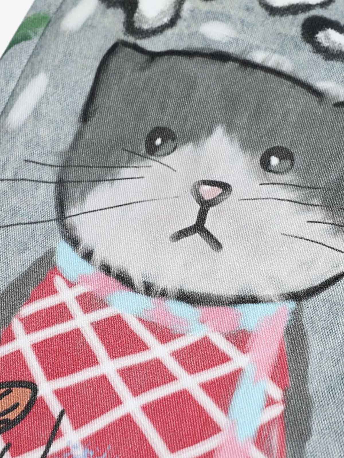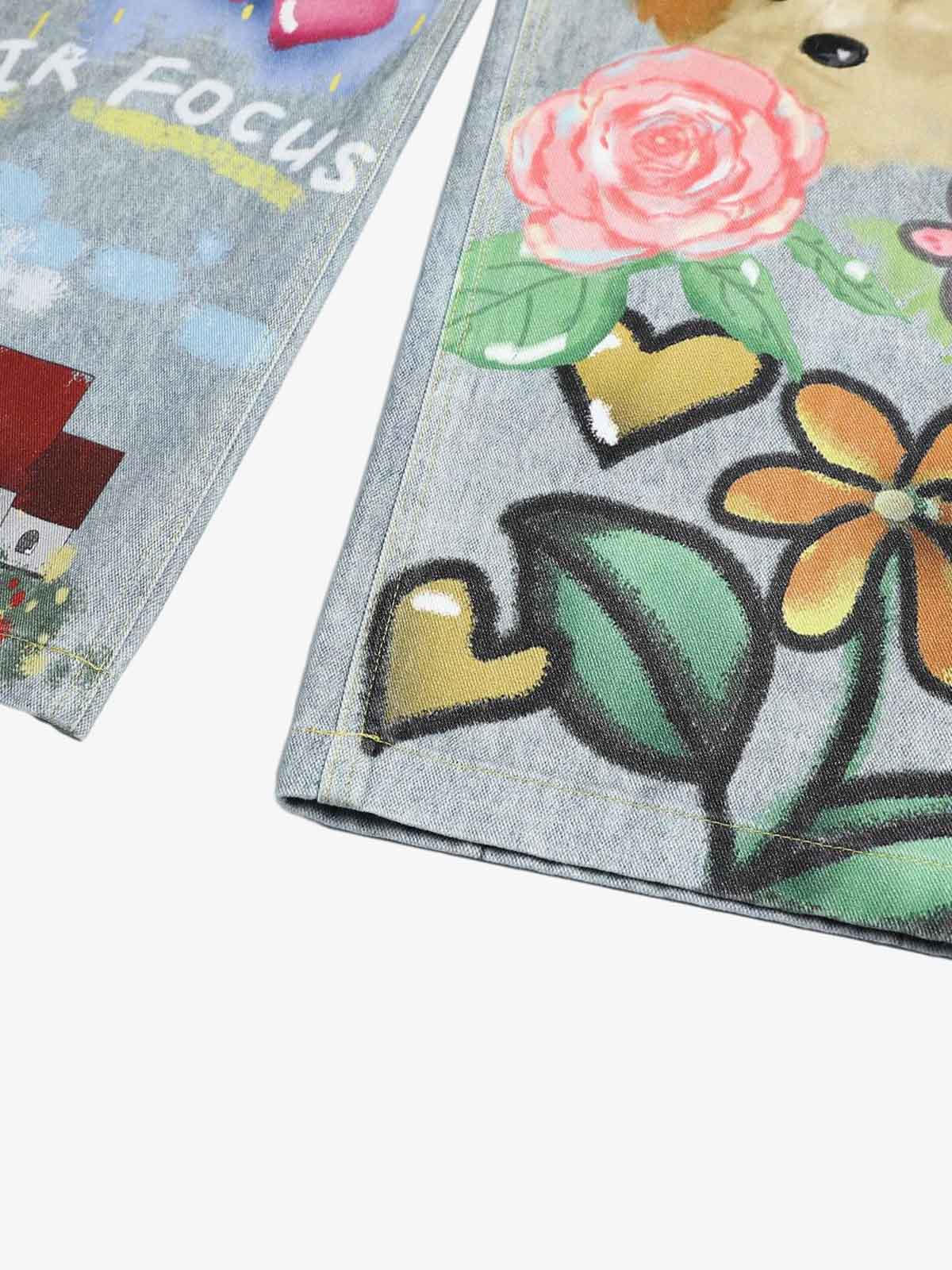 Graffiti Cartoon Animal Print Distressed Wide Leg Denim Jeans