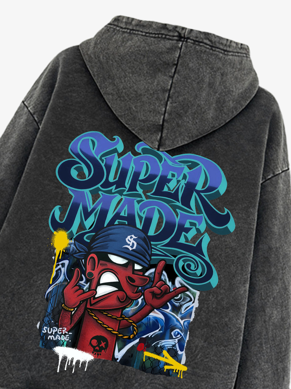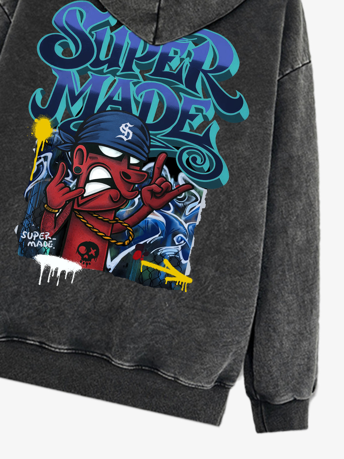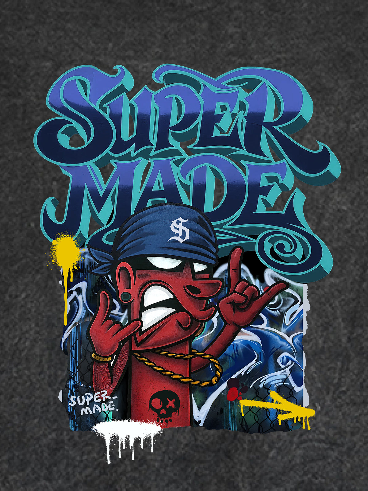 • Designelemente: Lebendige Kunstwerke im Graffiti-Stil, kräftige Schriftzüge, verspielte Charakterillustrationen