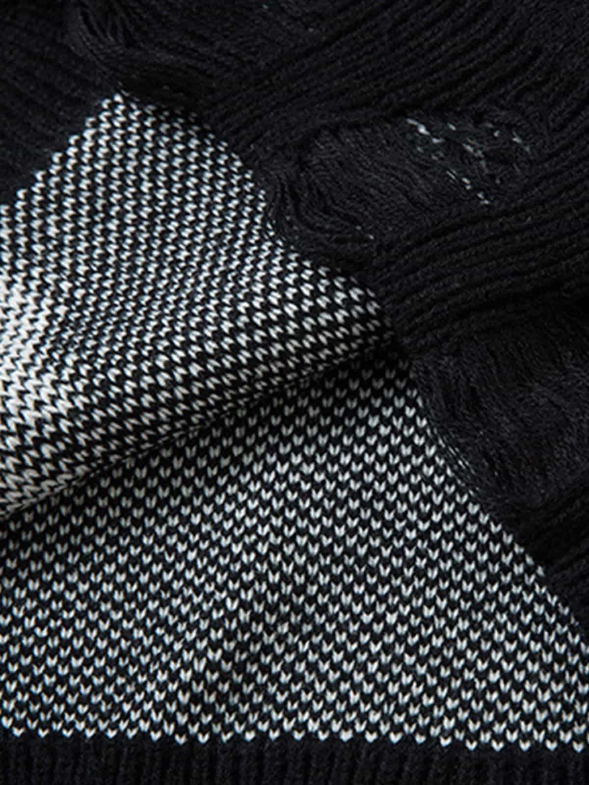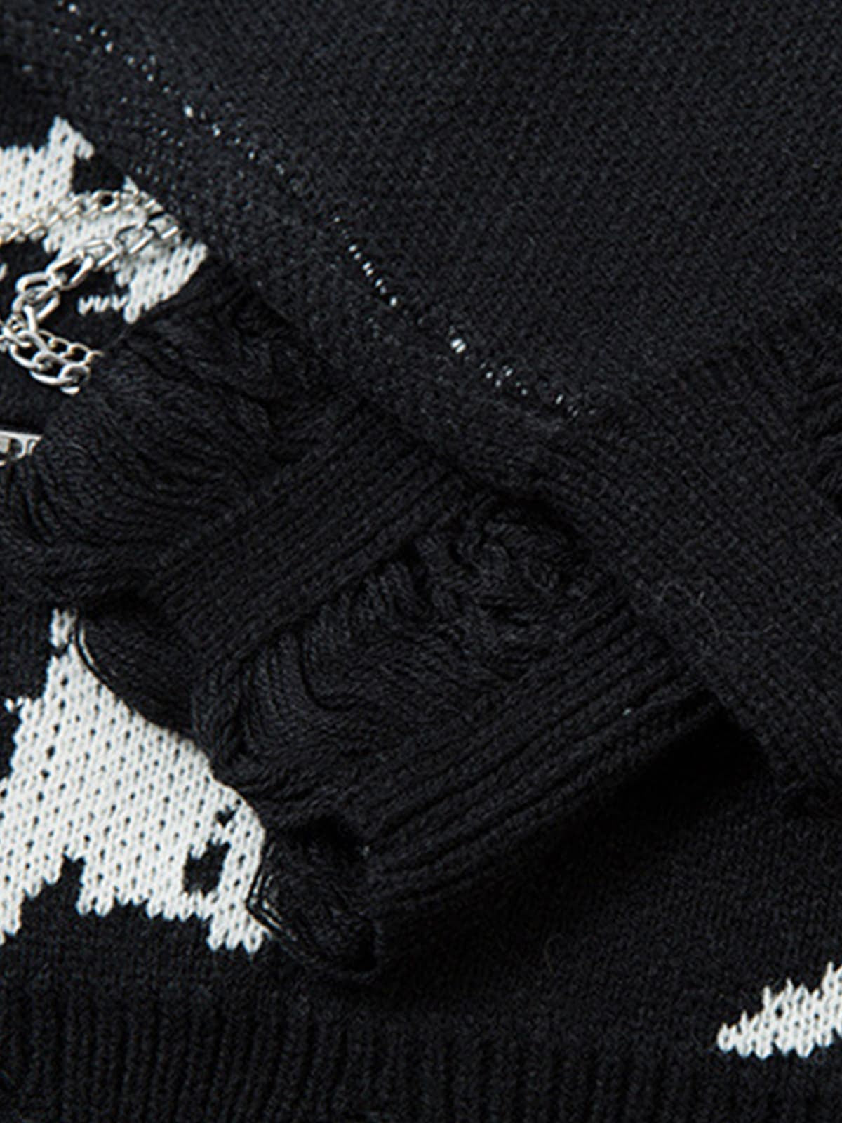 High Street Ripped Raw Edge Knitted Letter Jacquard Sweater