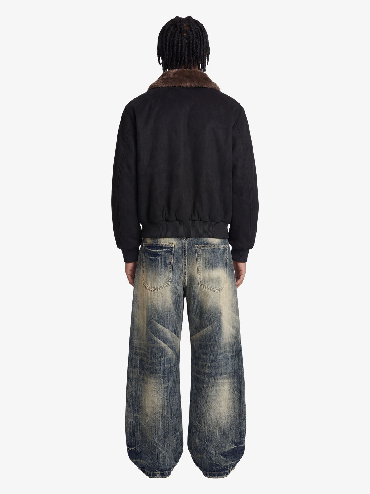 Retro Suede Faux Fur Collar Fleece Lined Bomber Jacket