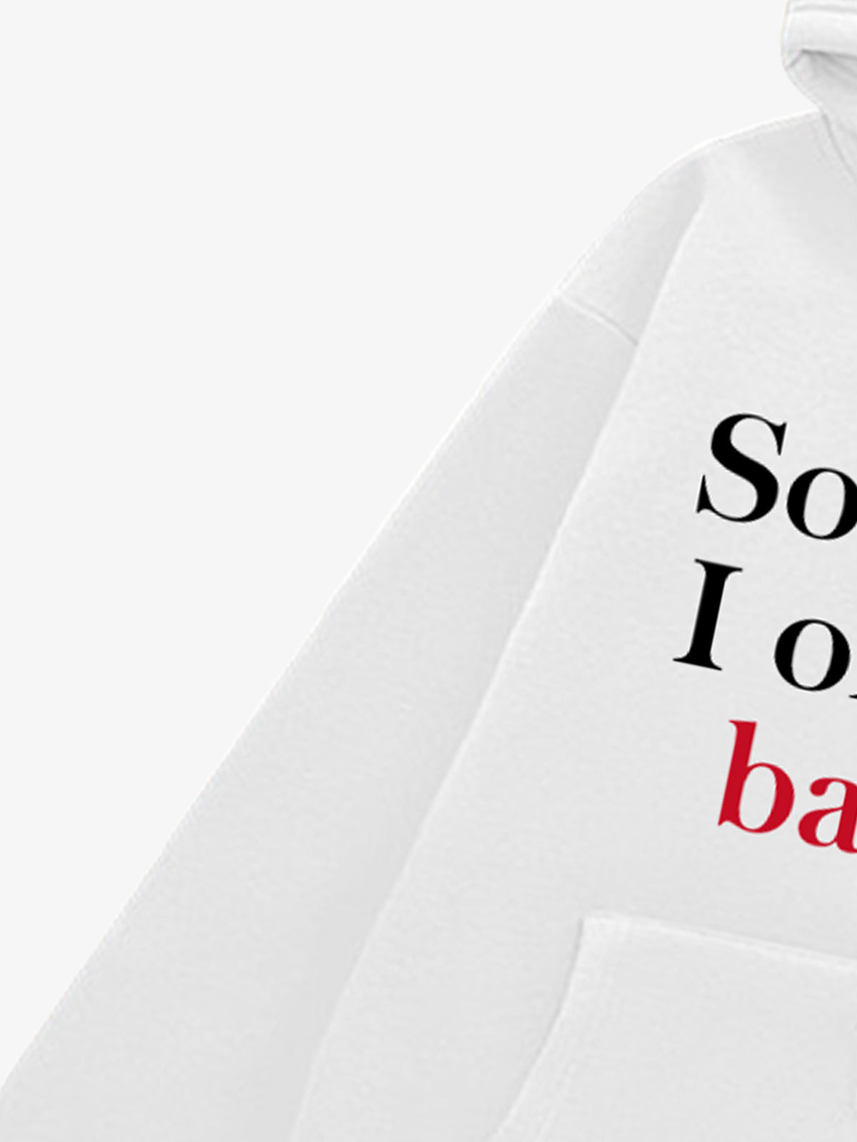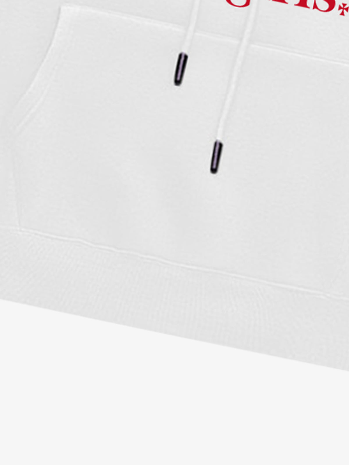 • Designelemente: Auffälliger grafischer Textdruck, modernes Kapuzendesign, Vordertasche