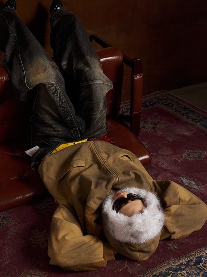 Cotton Washed Fur Hooded Jacket - 2265