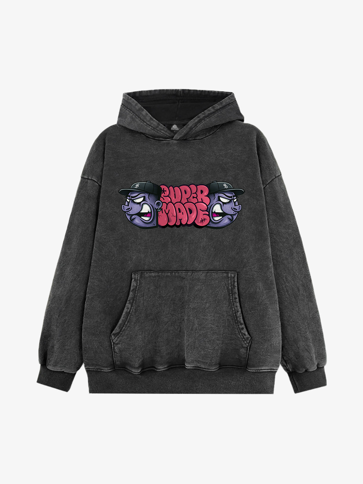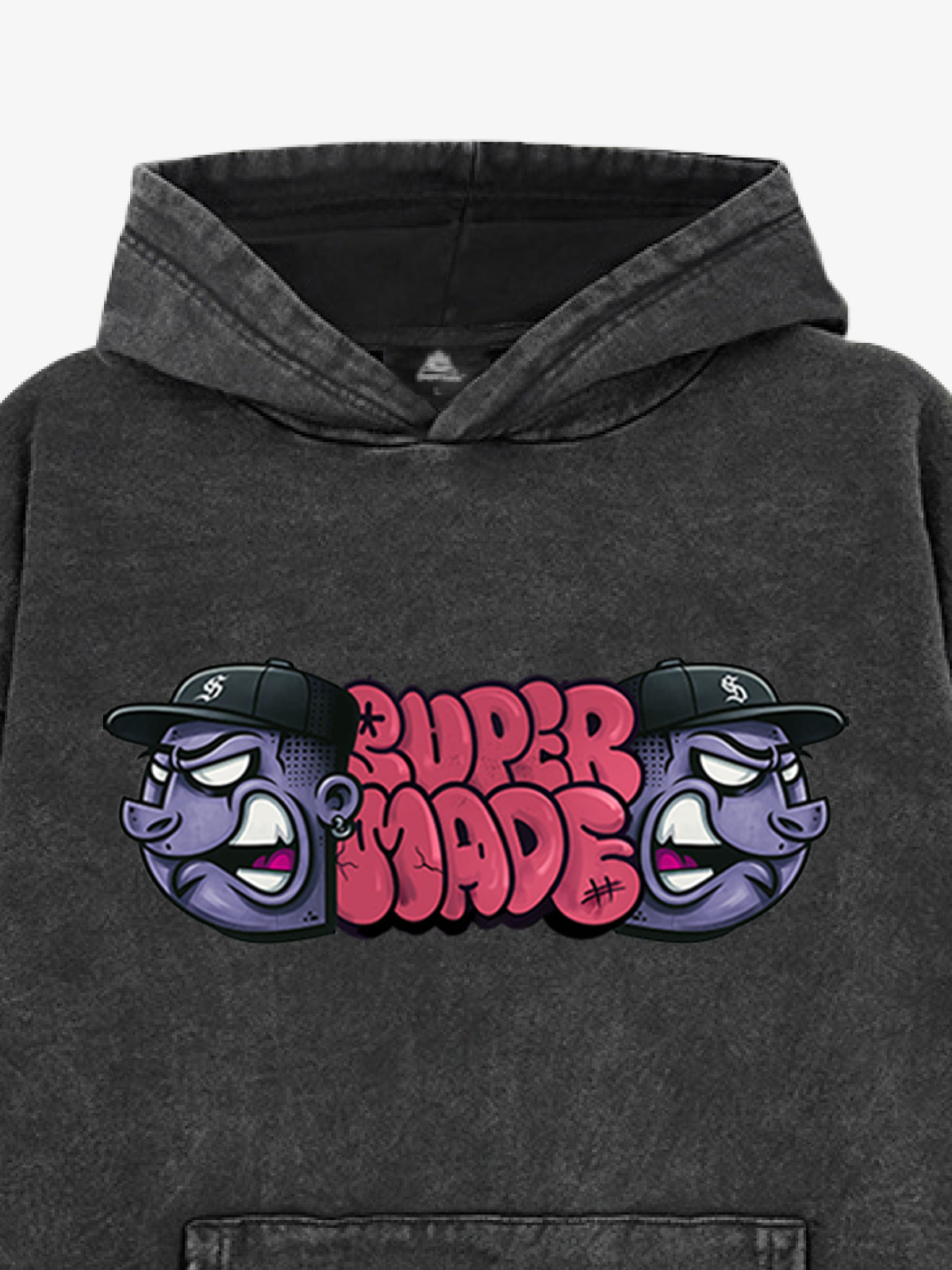 • Designelemente: Auffälliger Grafikdruck mit verspielten Figuren, Kapuzendesign