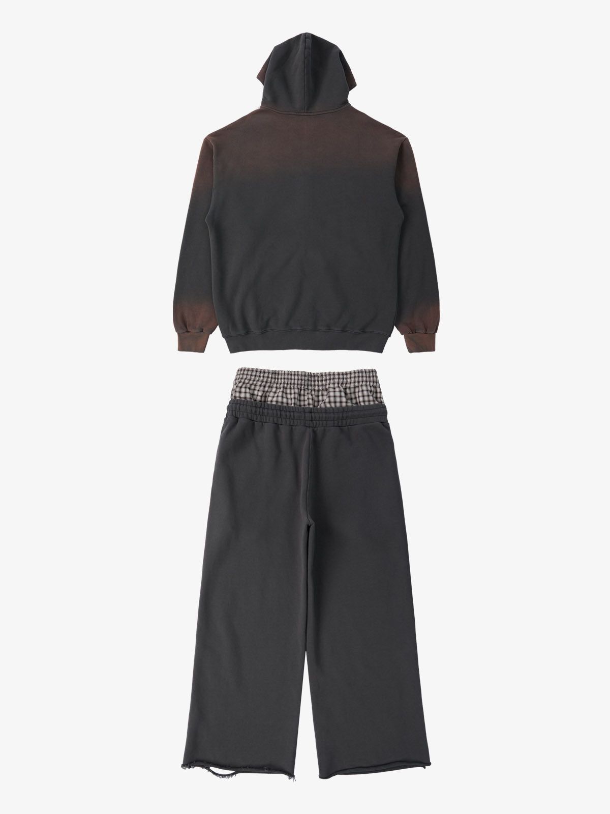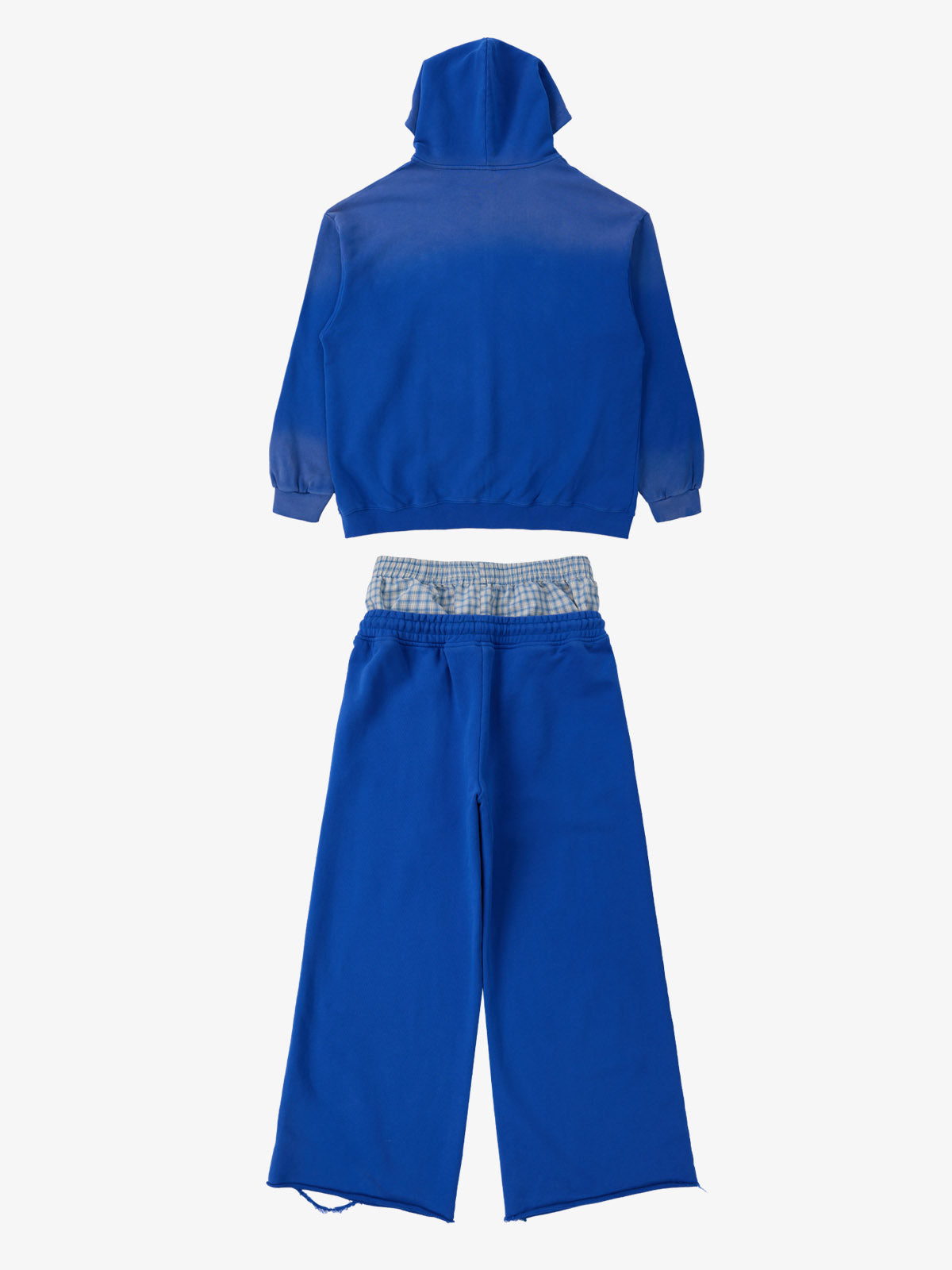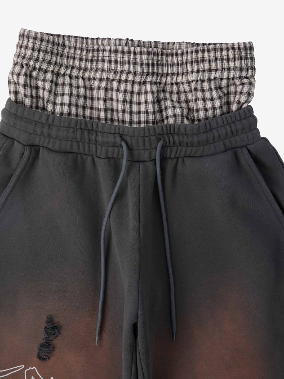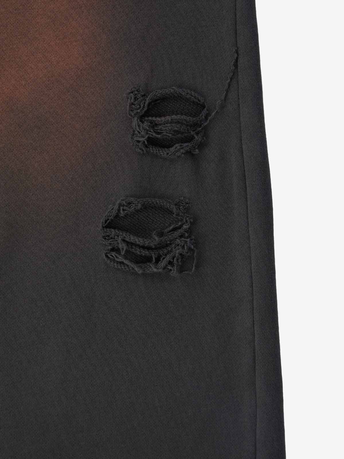Detail Features: Vintage-inspired distressed print, patchwork design for added texture, sweatshirt fabric with a soft yet structured feel, coordinated top and bottom set