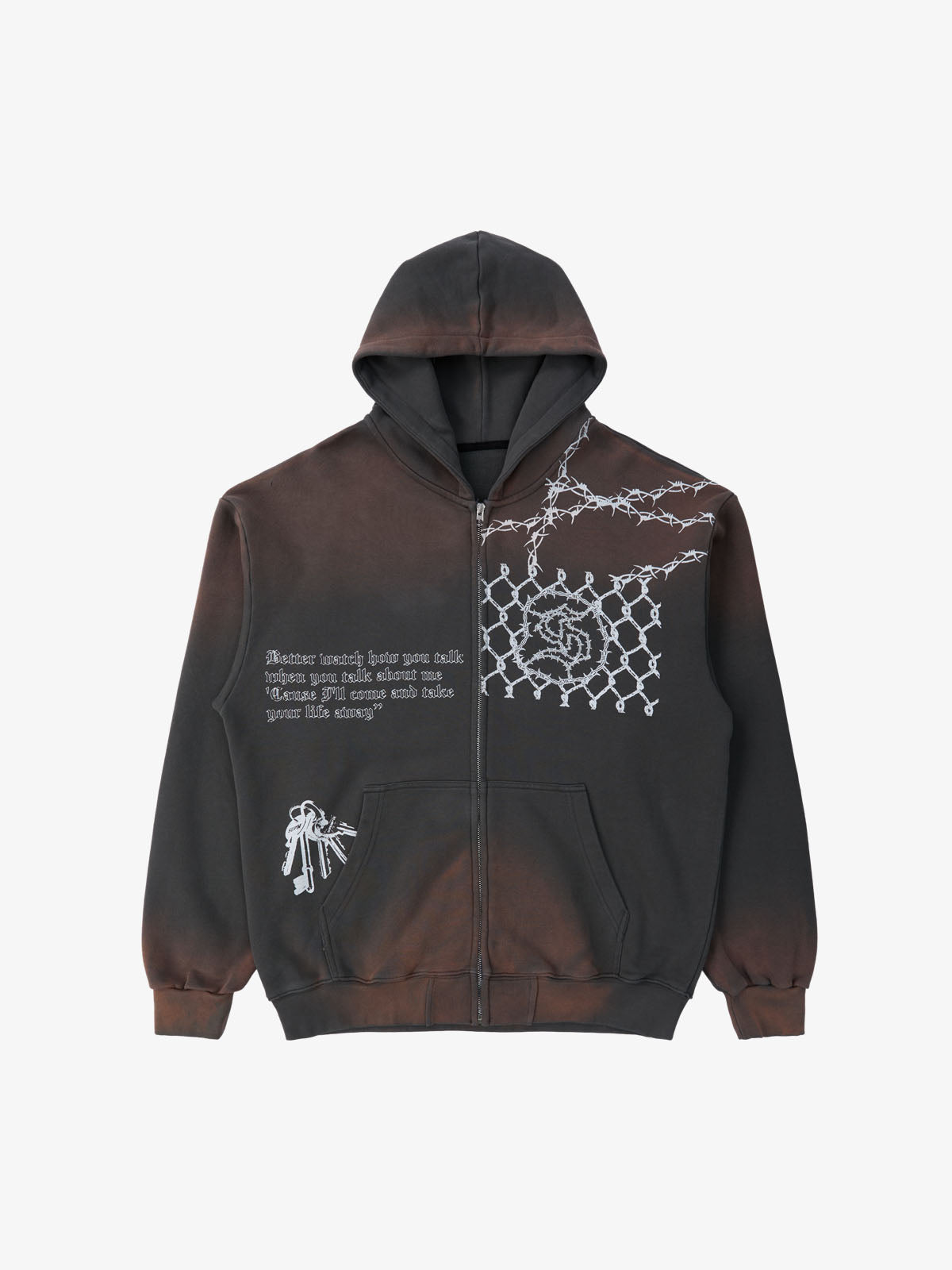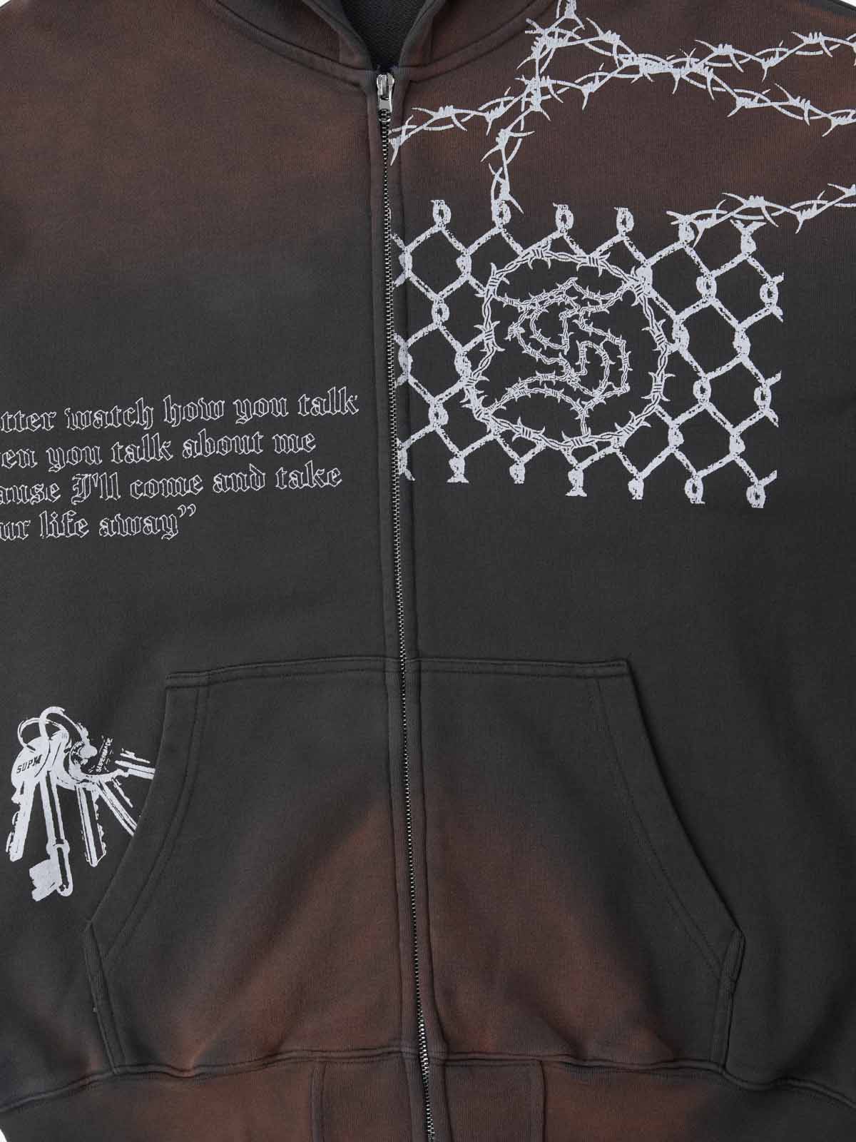Vintage Washed Tie-Dye Zip Up Hoodie & Barrel Sweatpants Tracksuit
