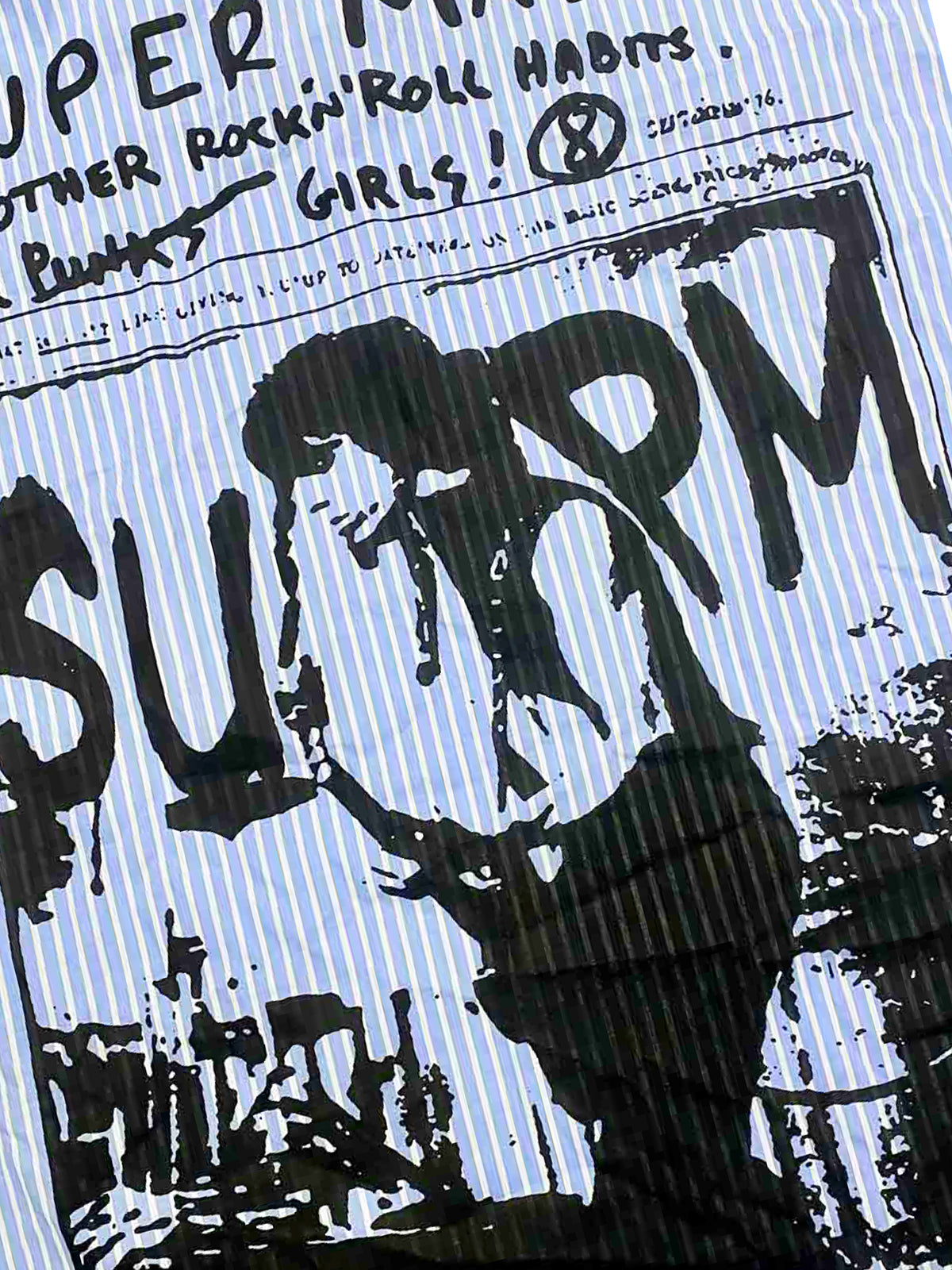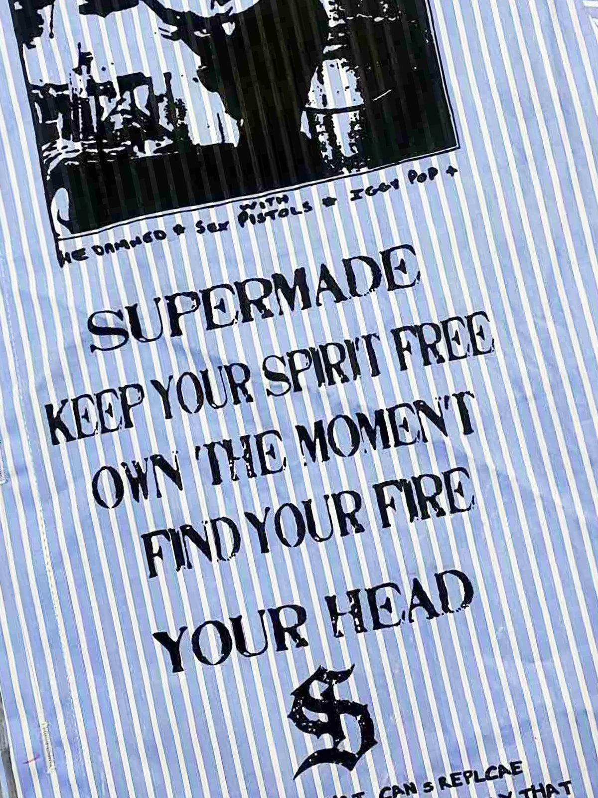 • Design Elements: Bold graphic print on the back, layered long sleeves under short sleeves, classic collar design