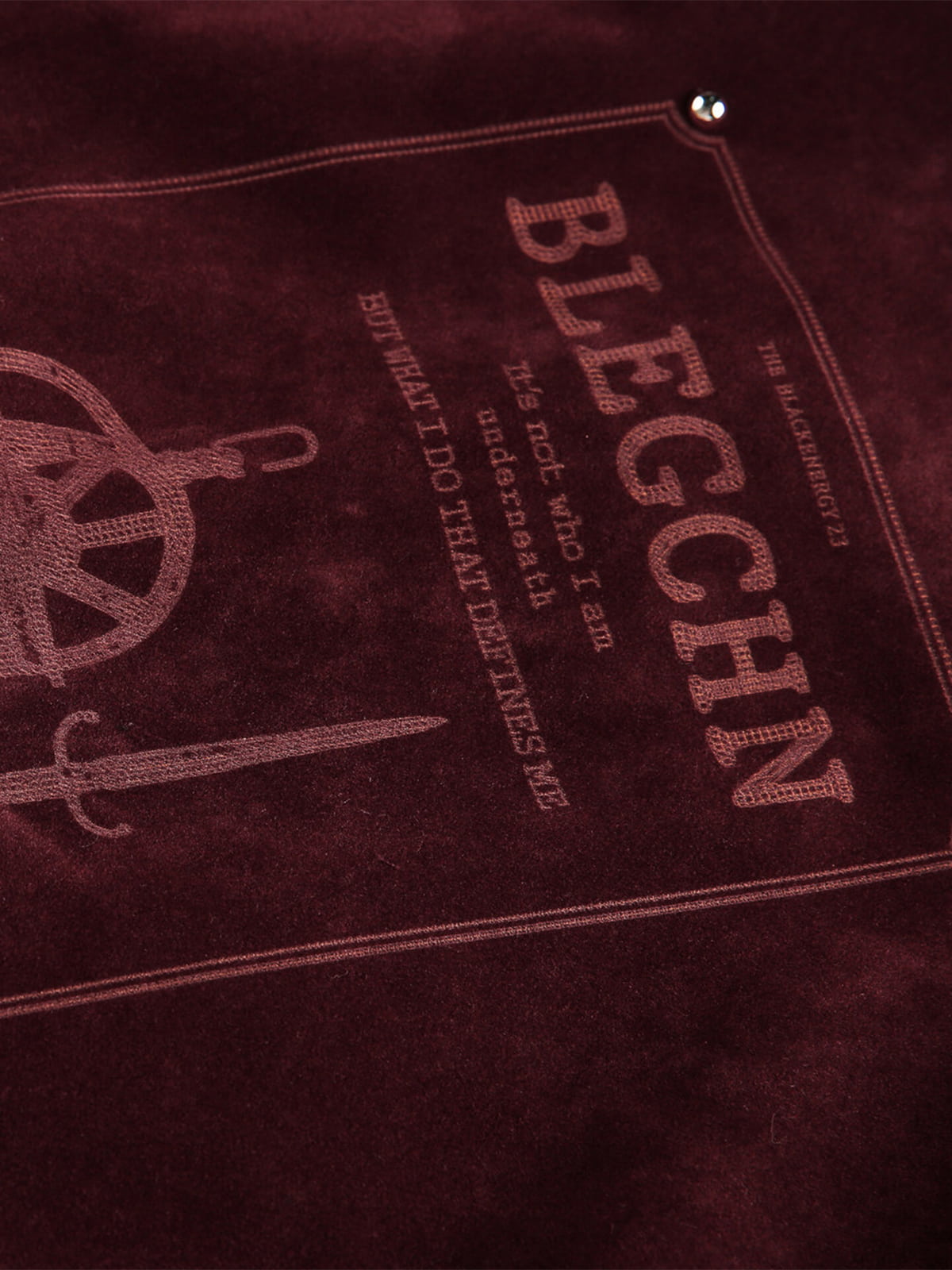 • Design Elements: Intricate dragon embroidery on the back, bold text accents, traditional architectural motifs