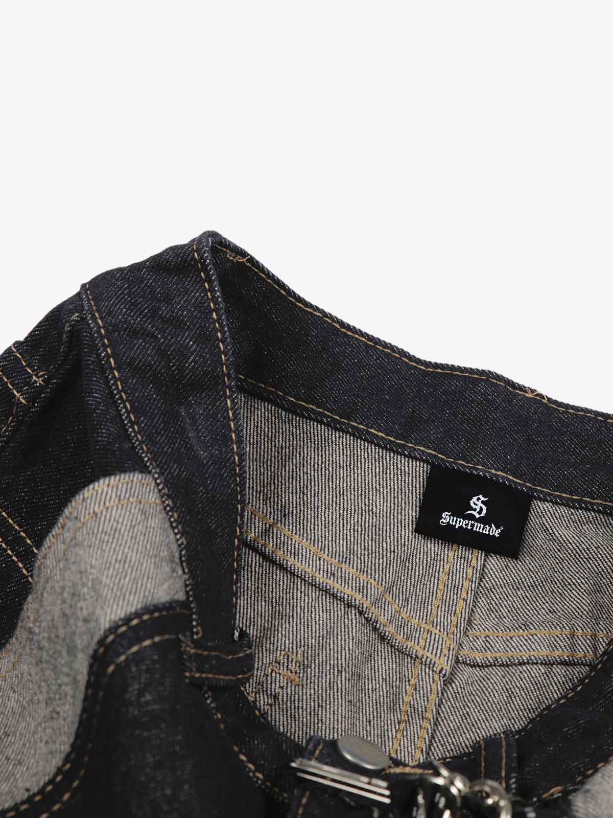 Contrast Panel Barrel Denim Jeans with Chain Detail