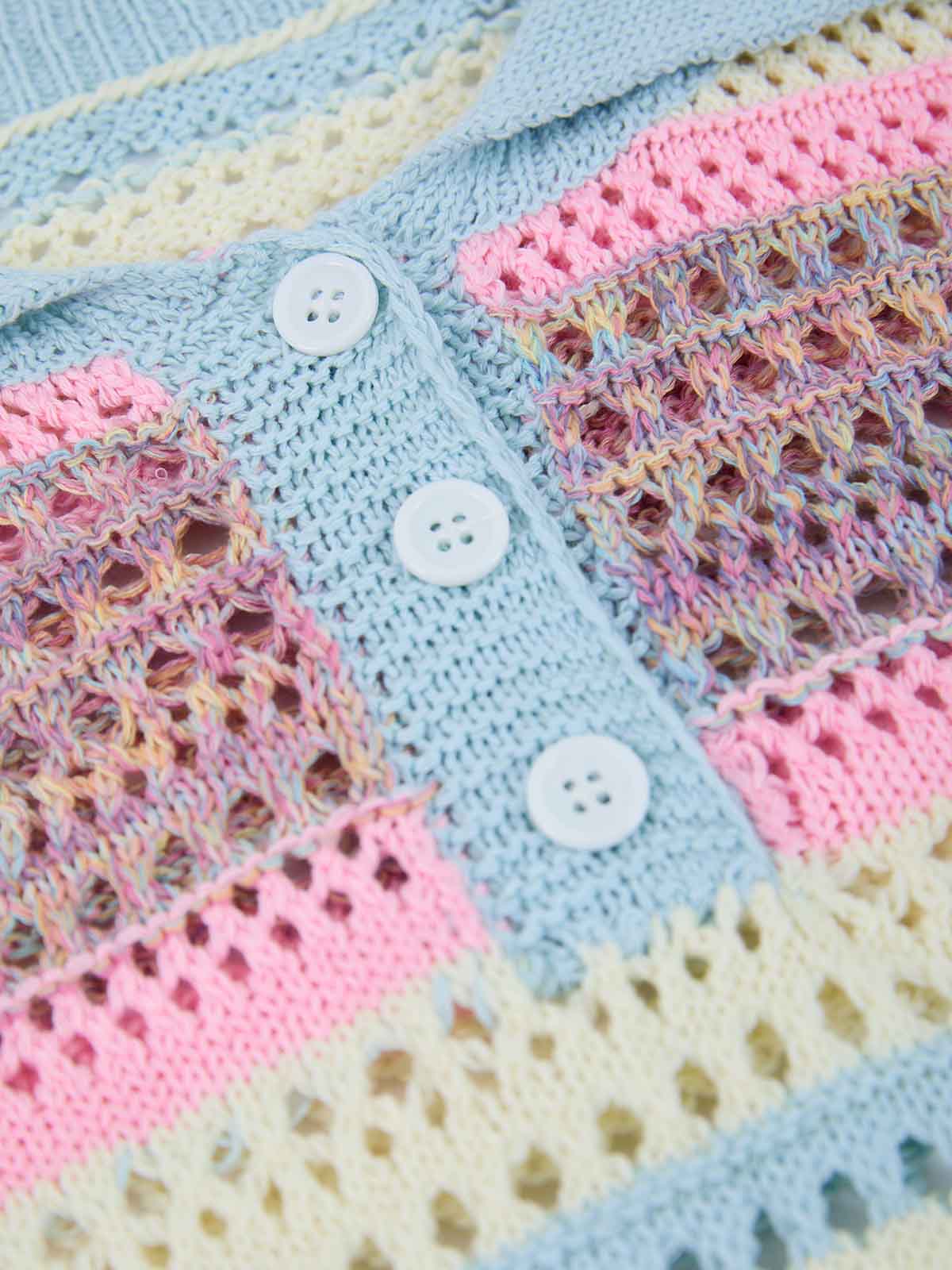 Pastel Striped Crochet Knit Short Sleeve Polo Shirt