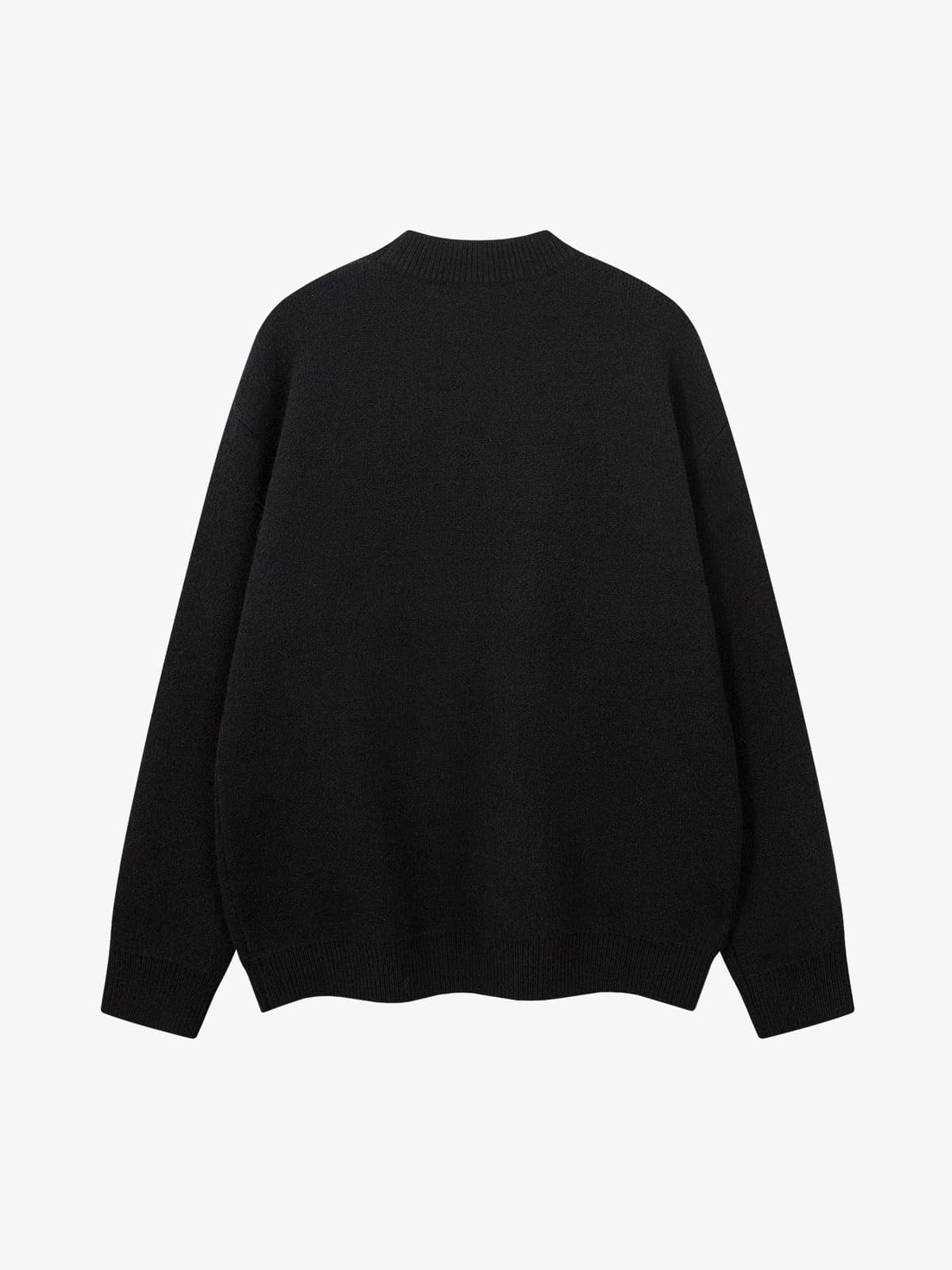 Retro Fuzzy Letter Patch Textured Knit Sweater