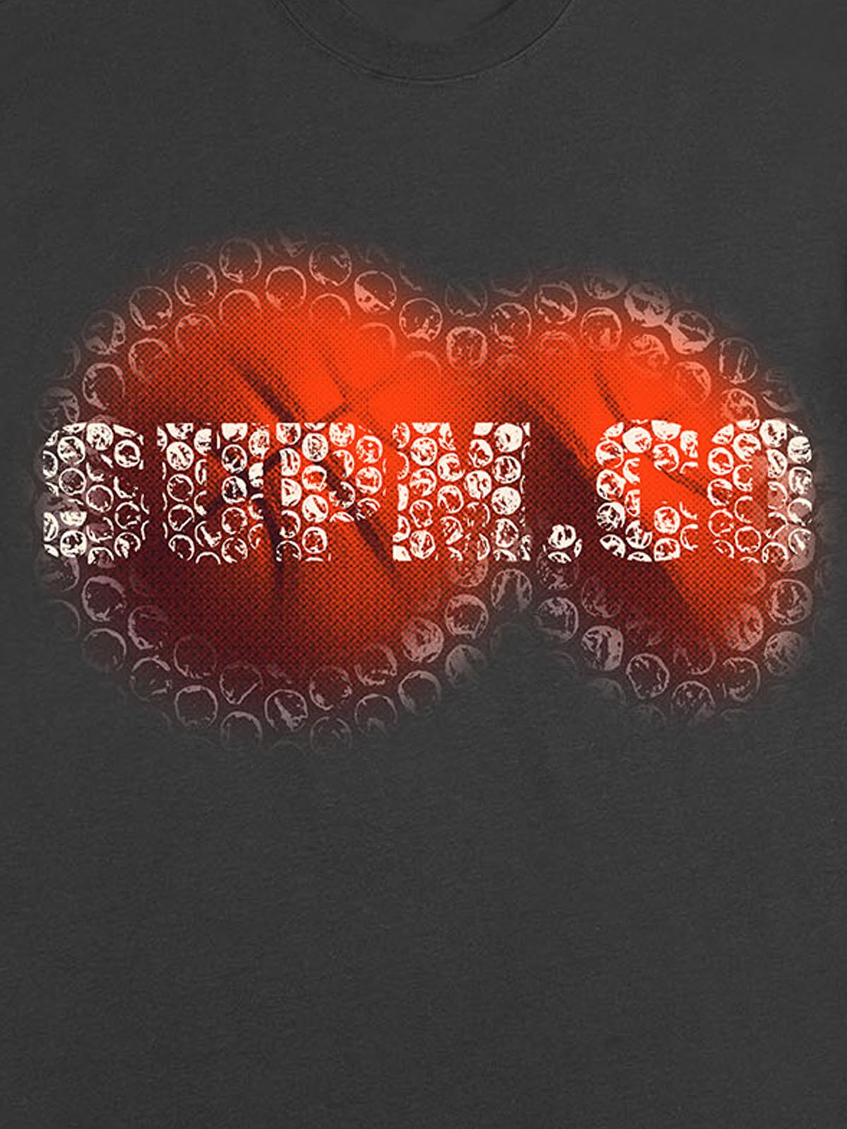 • Detail Features: Front Graphic Print with Red Blur Effect and Skull Pattern, Round Neckline, Short Sleeve