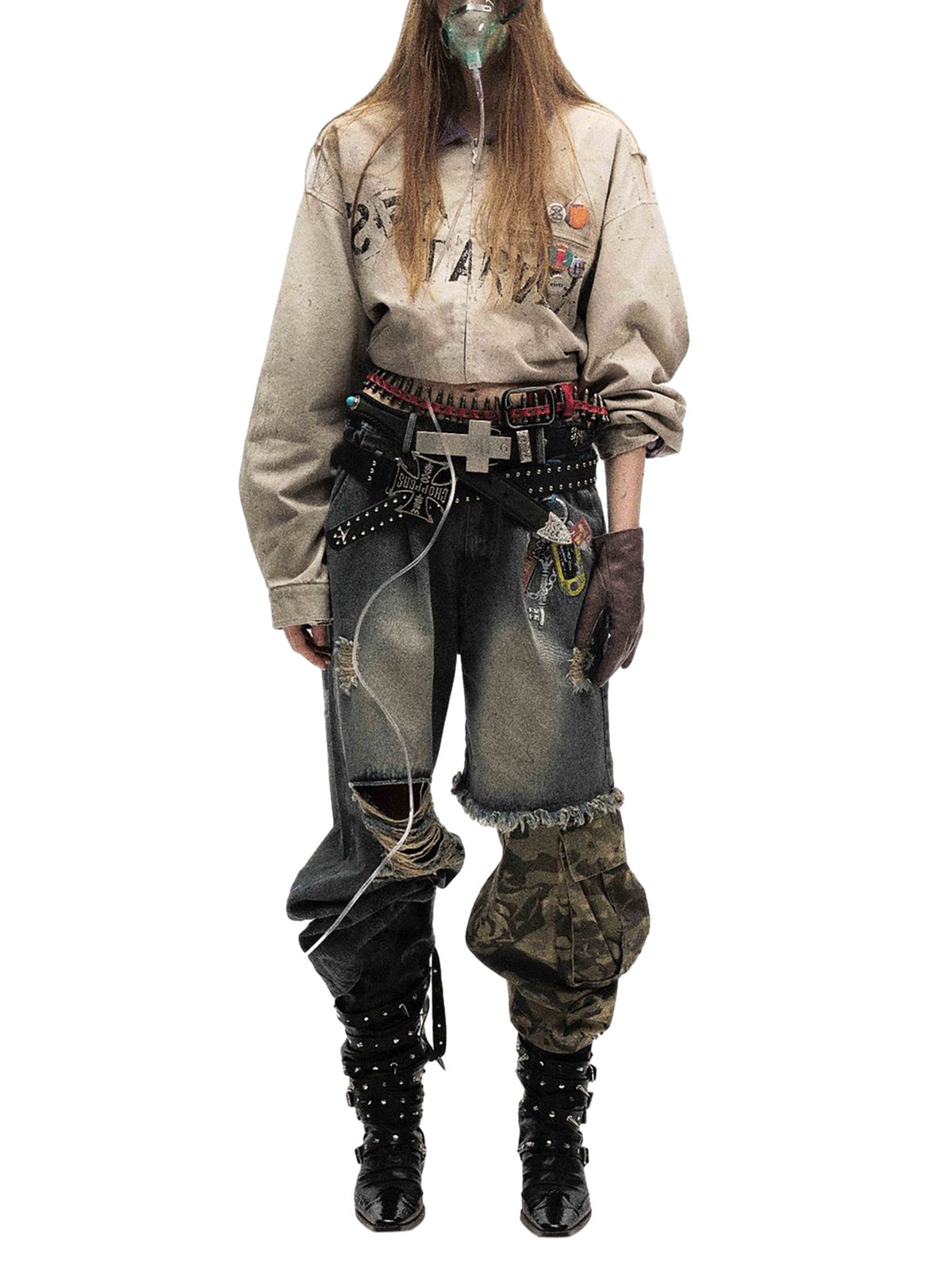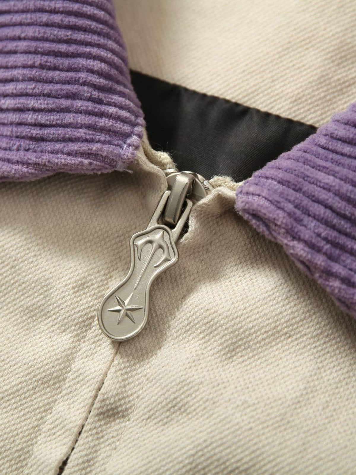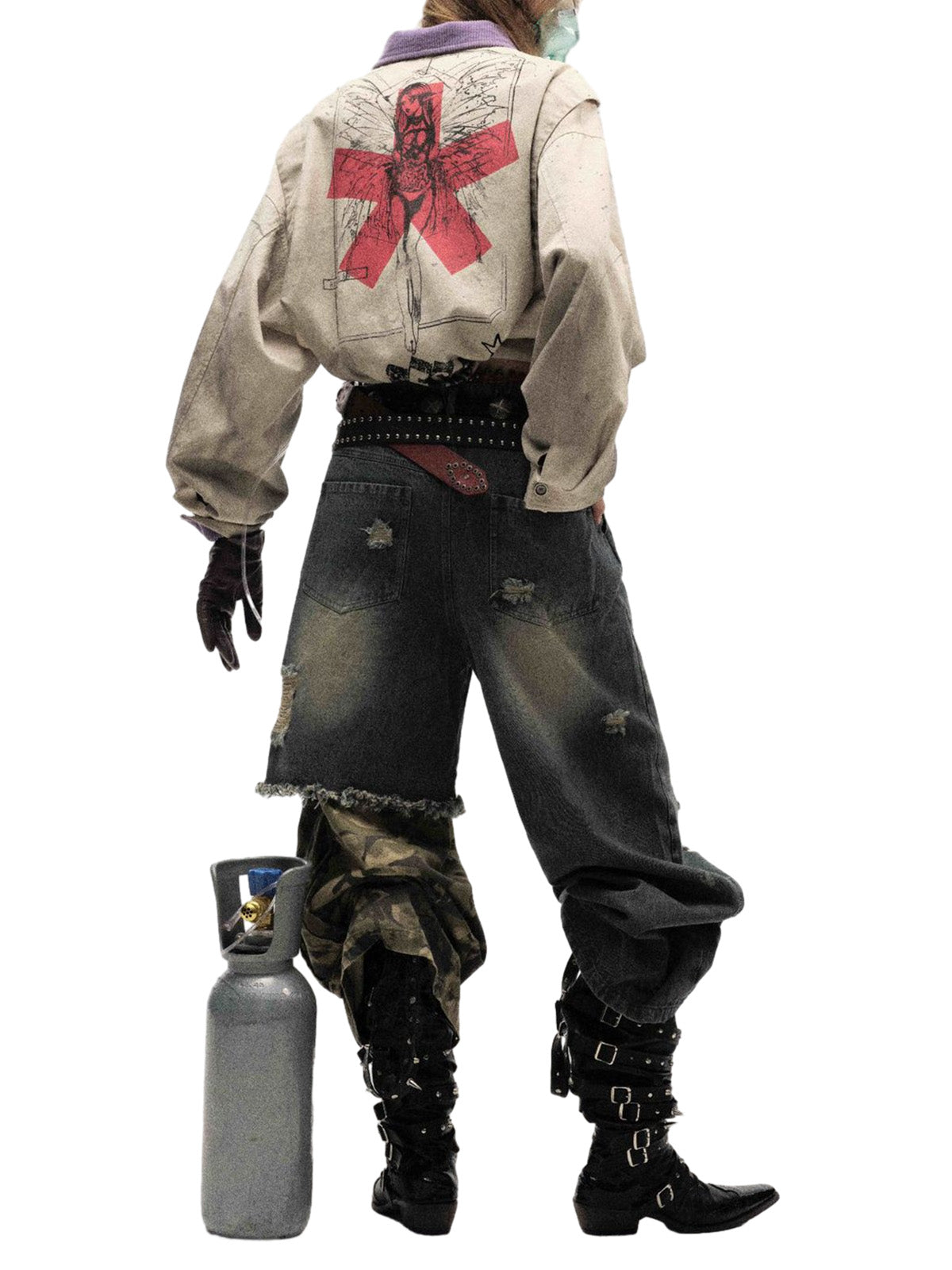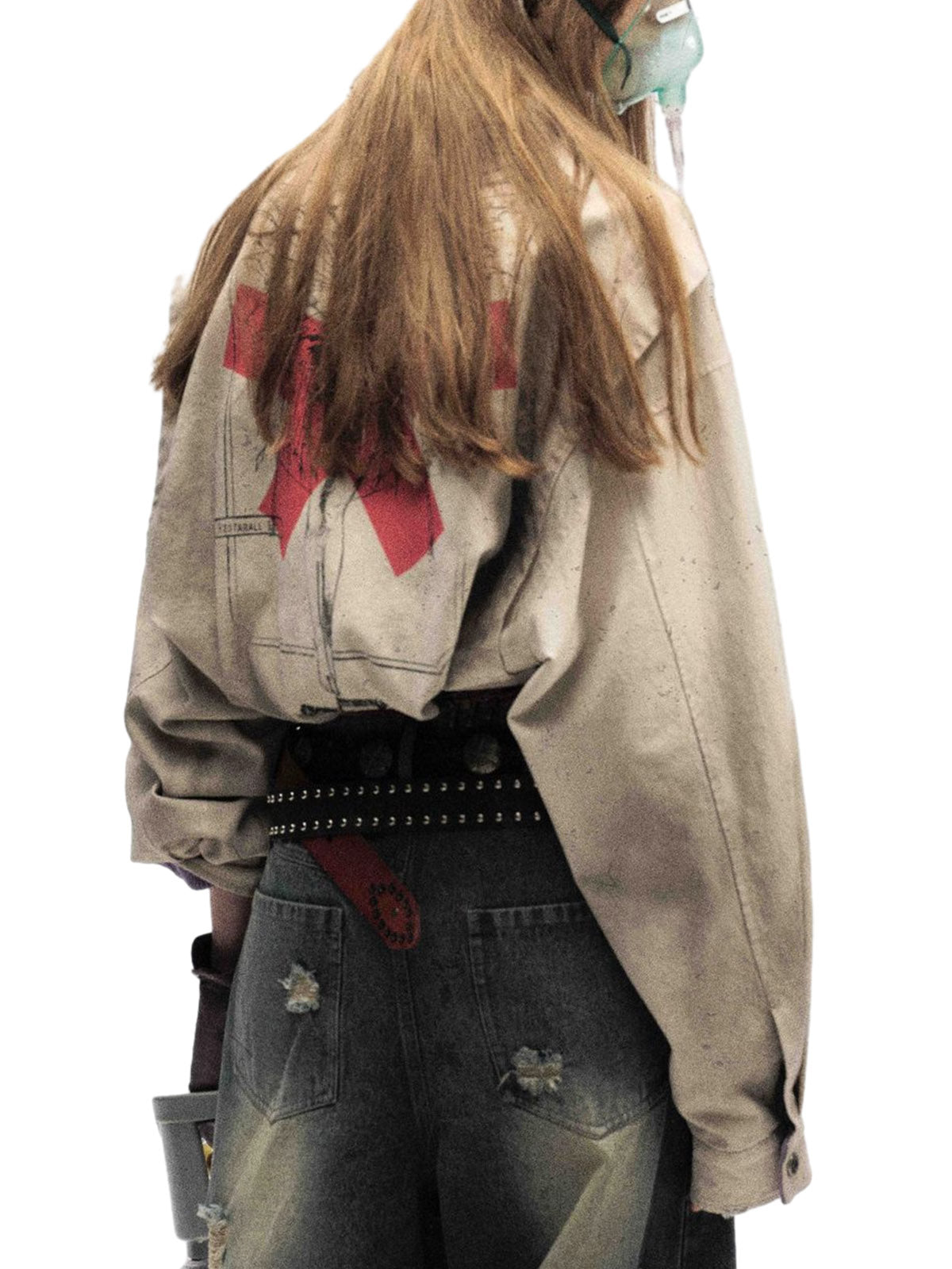 • Características detalladas: Cierre de cremallera frontal, Estampado desgastado, Puños y dobladillo acanalados, Diseño gráfico