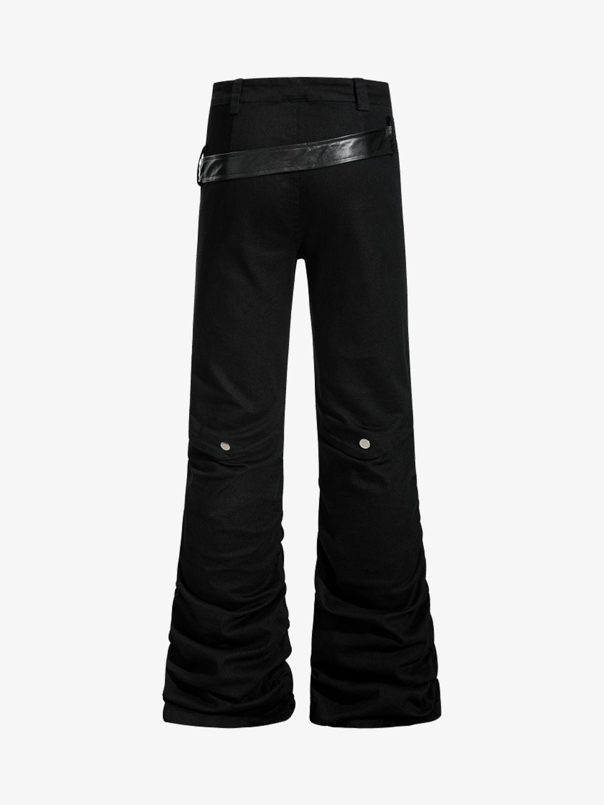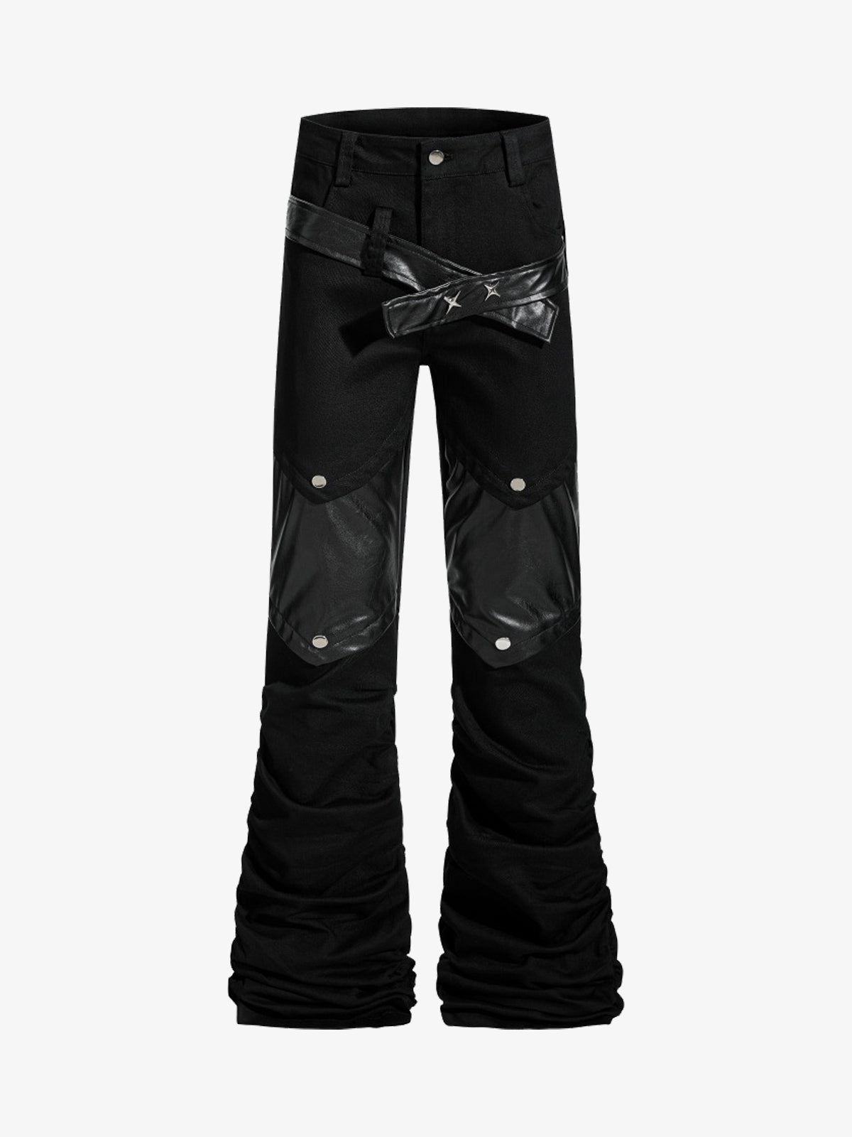 Vintage Heavy Pleated PU Leather Stitch Patchwork Flared Pants