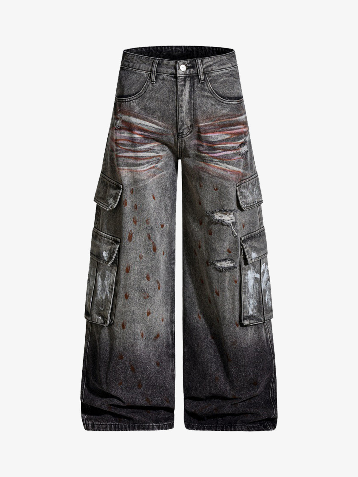 Wasteland Heavy Washed Distressed Tie-Dye Work Jeans
