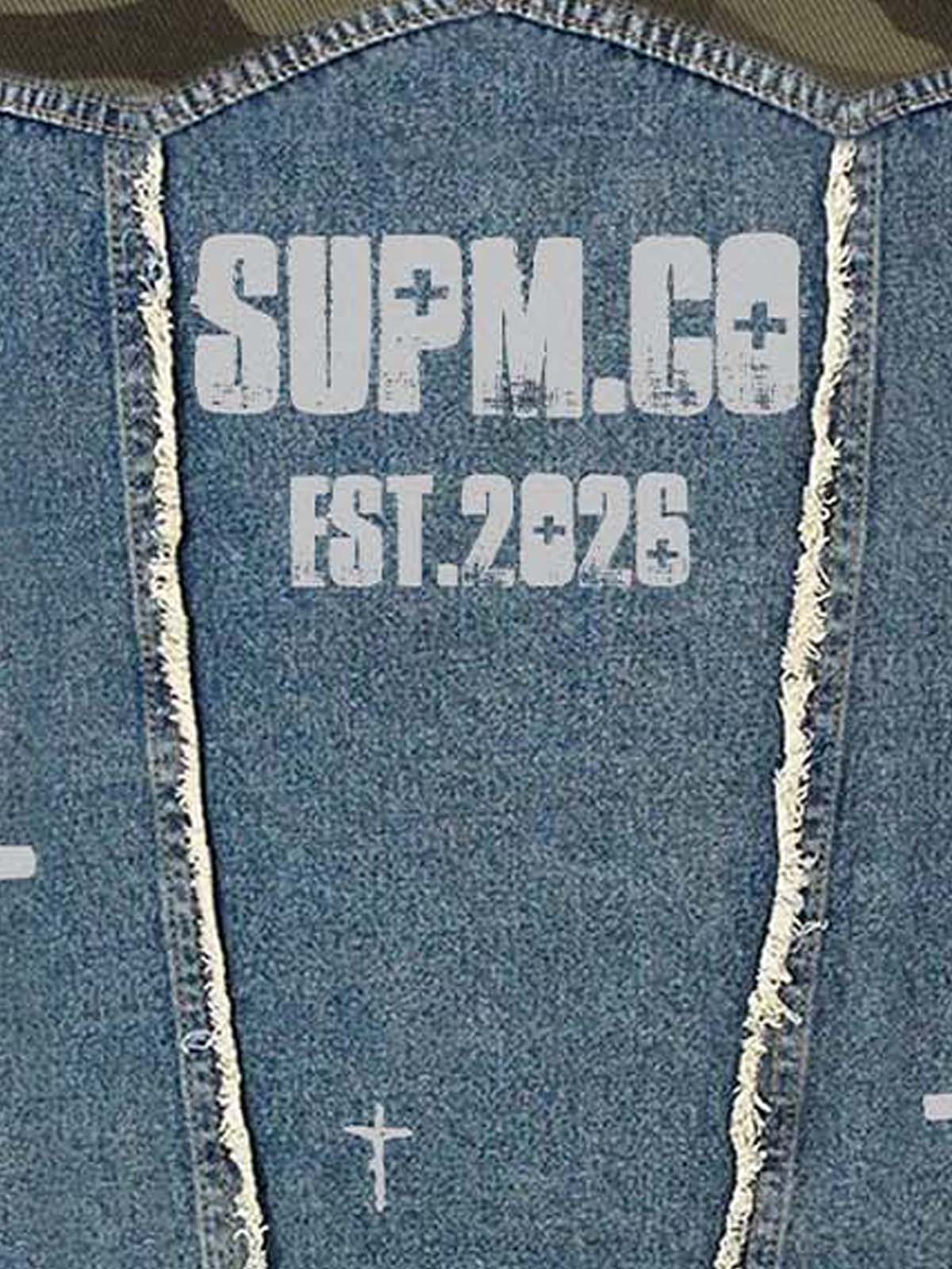 Distressed Camo Patchwork Sleeveless Denim Vest