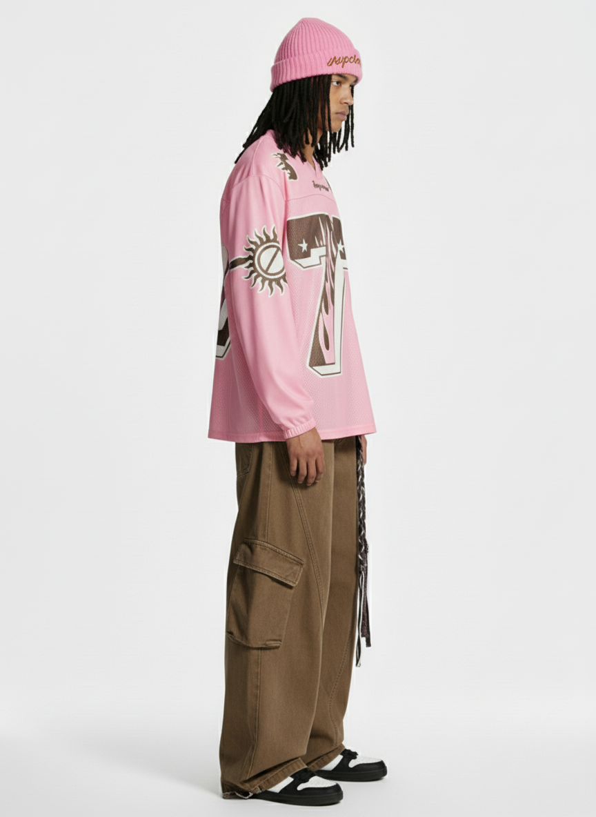 • Detail Features: Large Number 77 with Star Accents, Flame Patterns on Shoulders and Sleeves, V-Neck Collar