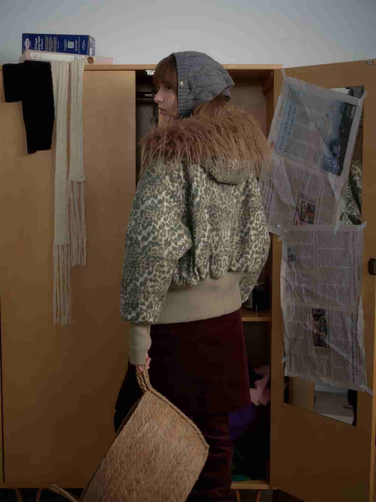Cheetah Print Mink Fur Hooded Jacket - 2270