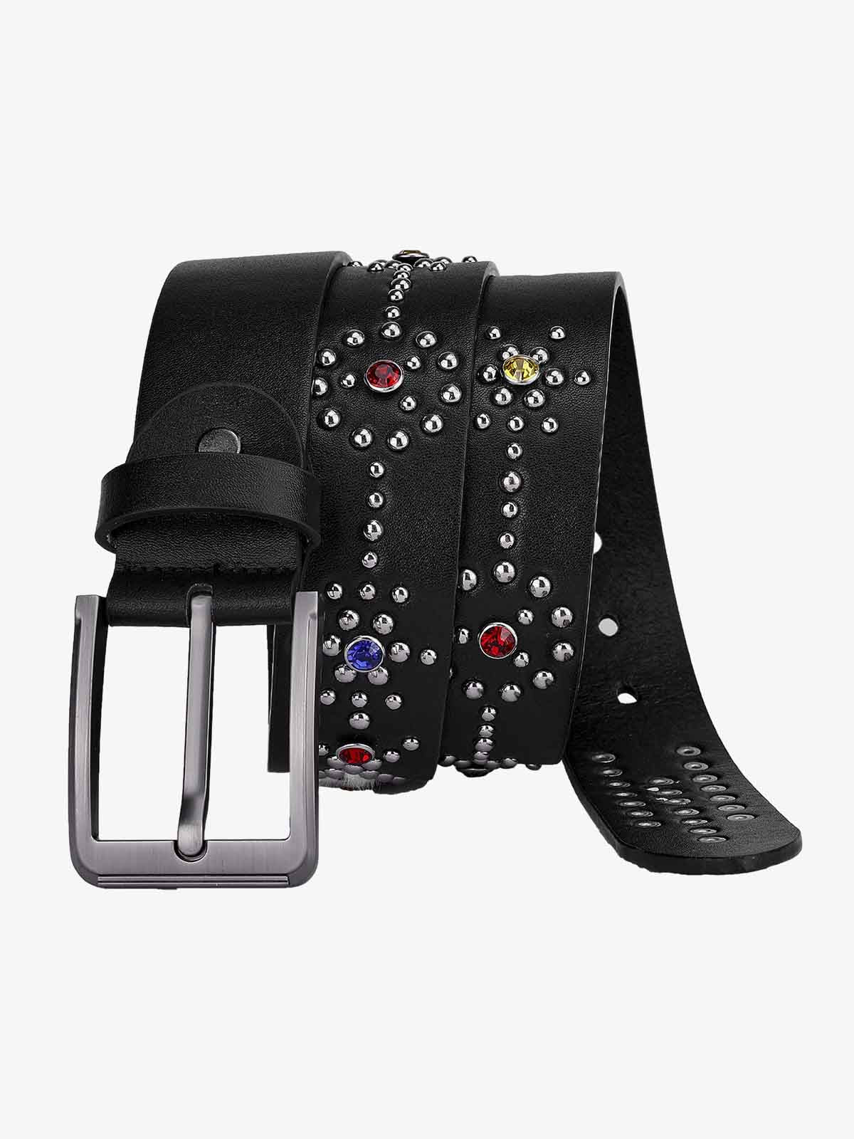 • Detail Features: Embellished with silver studs and colorful gemstones, classic buckle design, adjustable length