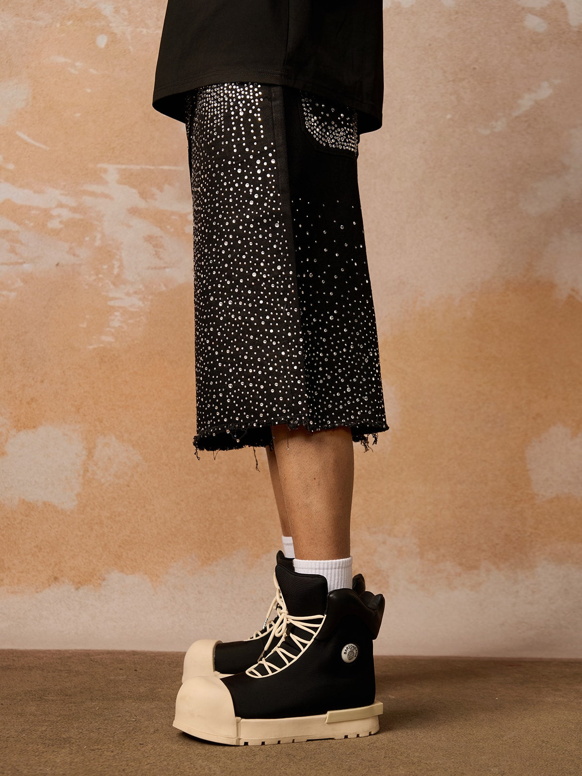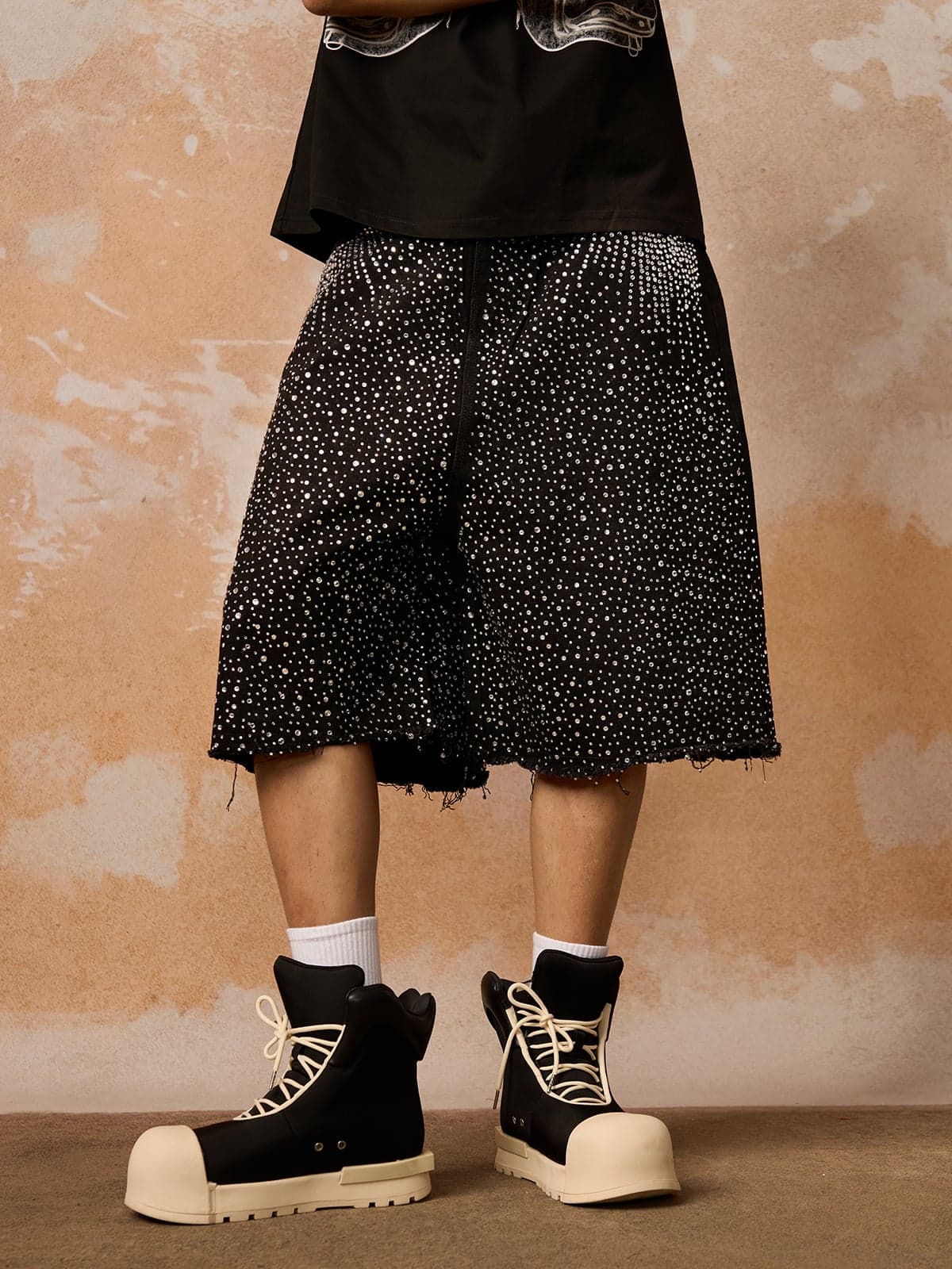• Éléments de design : culottes ornées uniques associées à un t-shirt noir élégant avec un logo audacieux