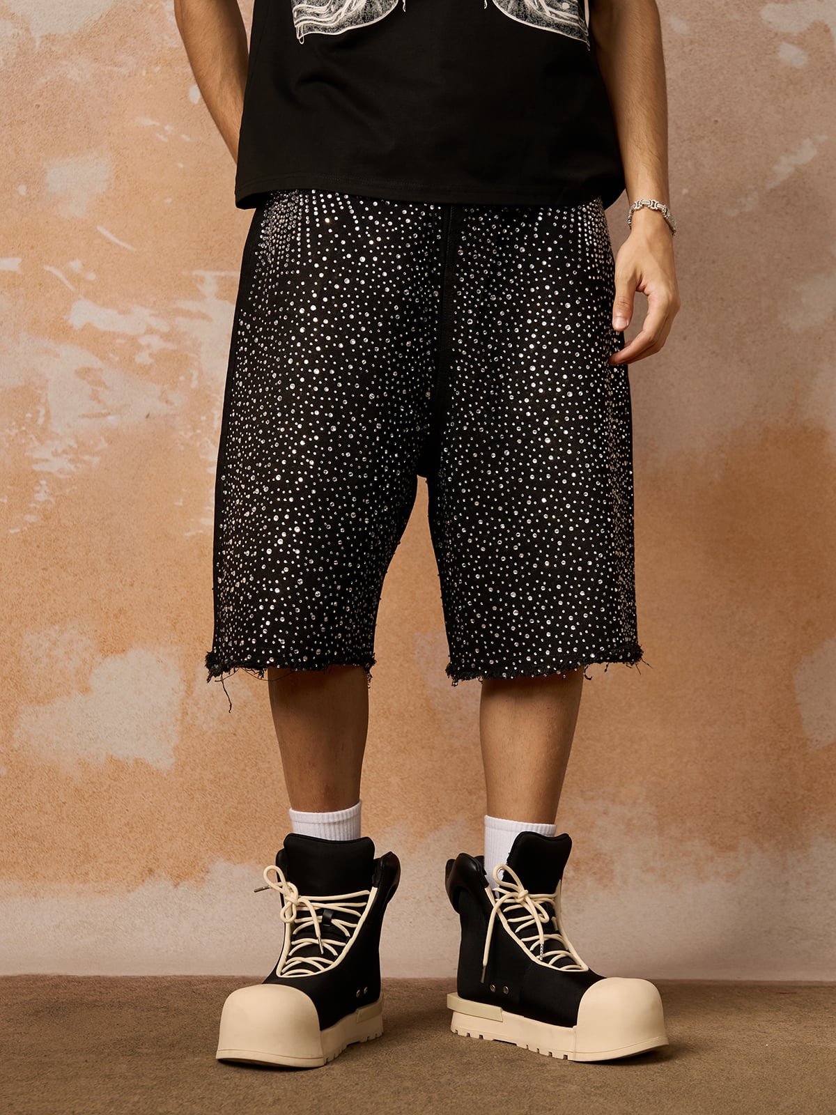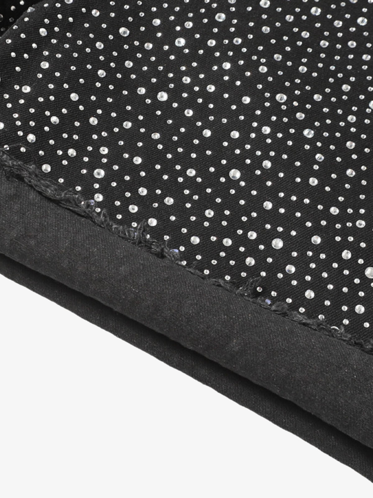 Short en jean délavé rétro à bords bruts et strass-2419