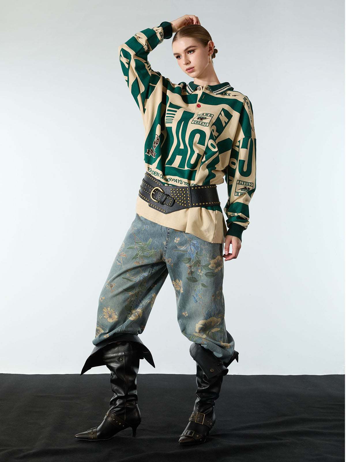 • Caractéristiques détaillées : taille haute, jambe large, imprimé floral, ceinture élastique