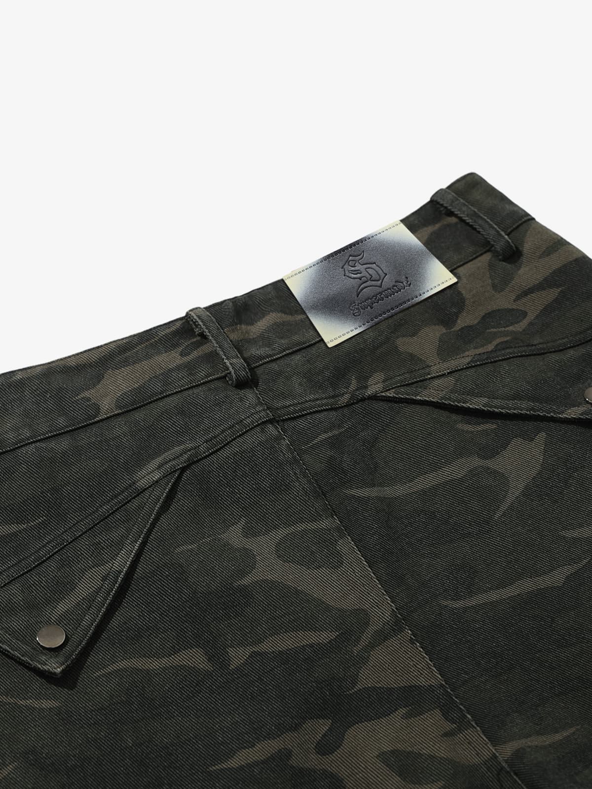 Vintage Camouflage Print Multi-Pocket Cargo Barrel Pants