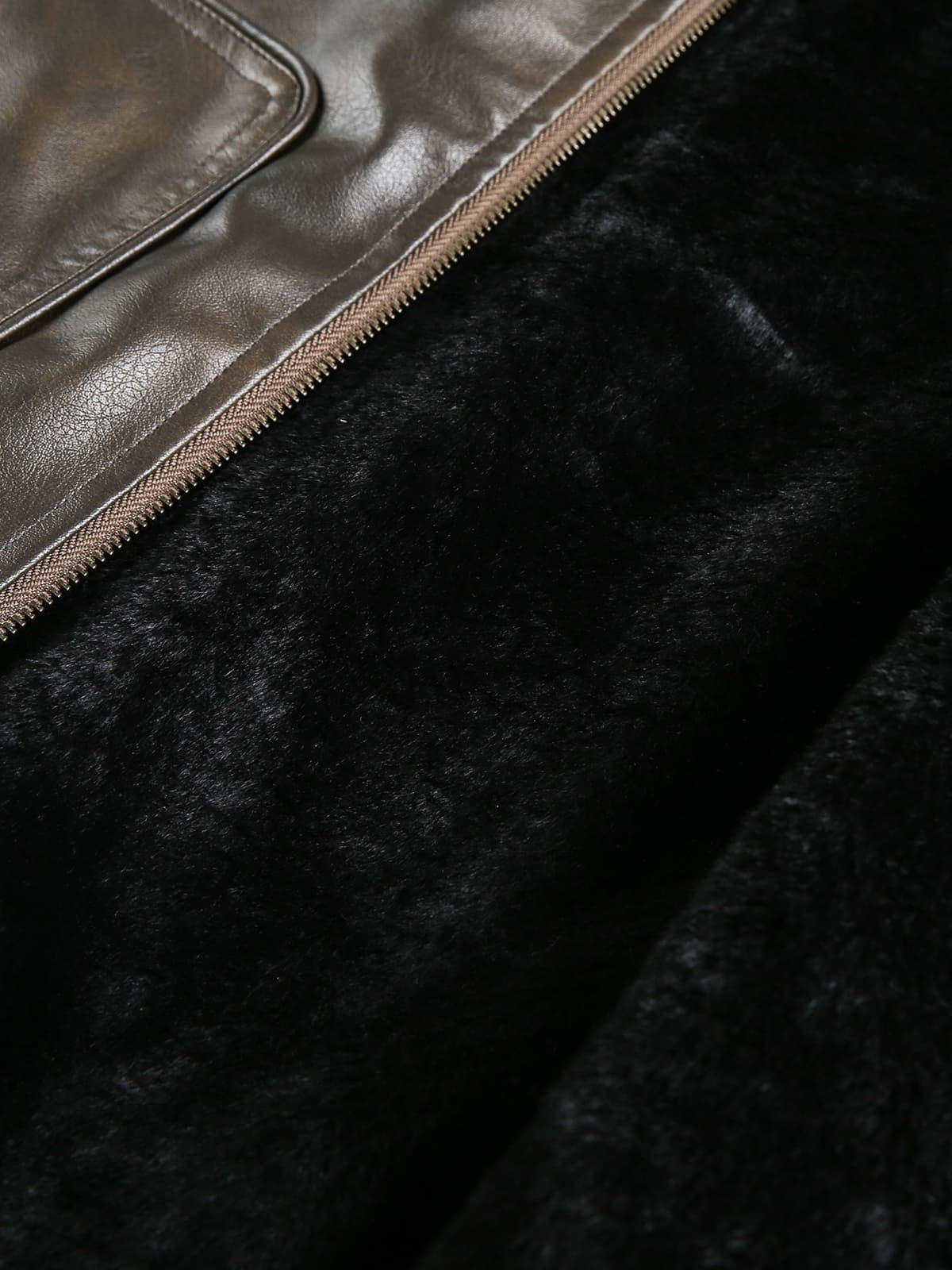•   Design Elements: Smooth PU leather texture, fleece lining for extra warmth, utility pocket design, and stand-up collar with zip closure