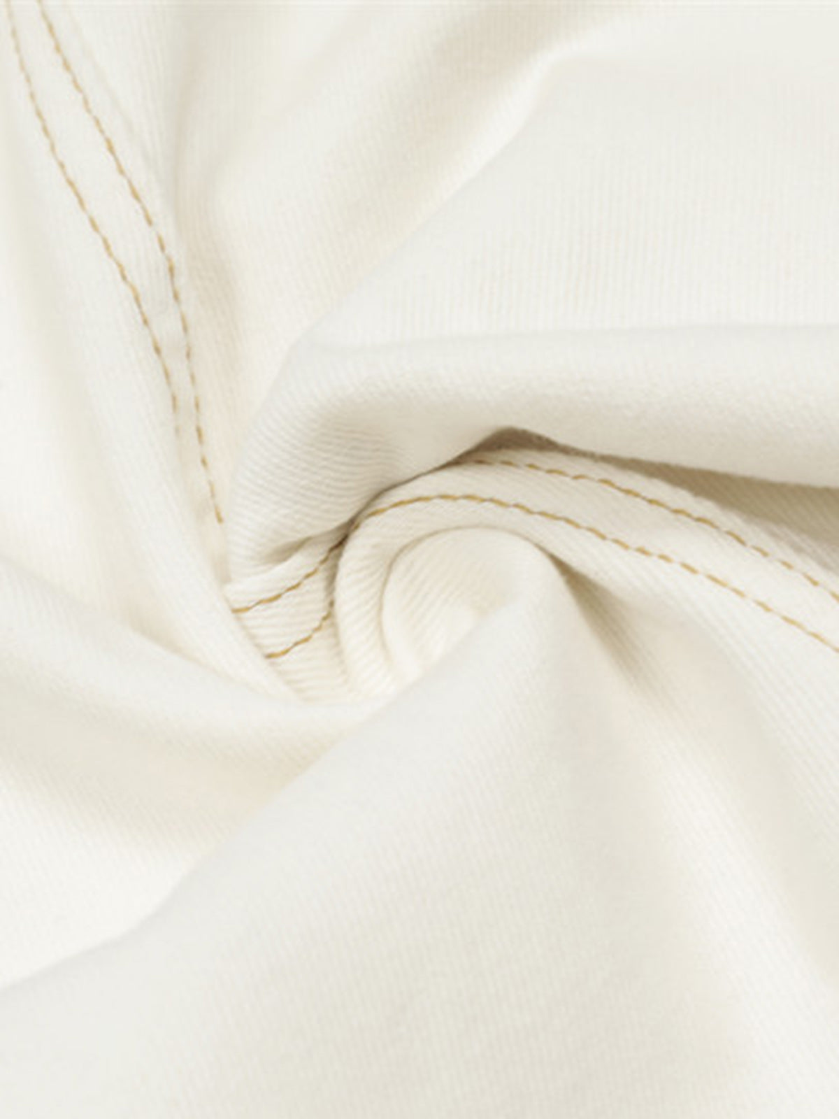 • Elementi di design: toppe floreali ricamate sulle tasche, vestibilità comoda, chiusura con bottoni in vita