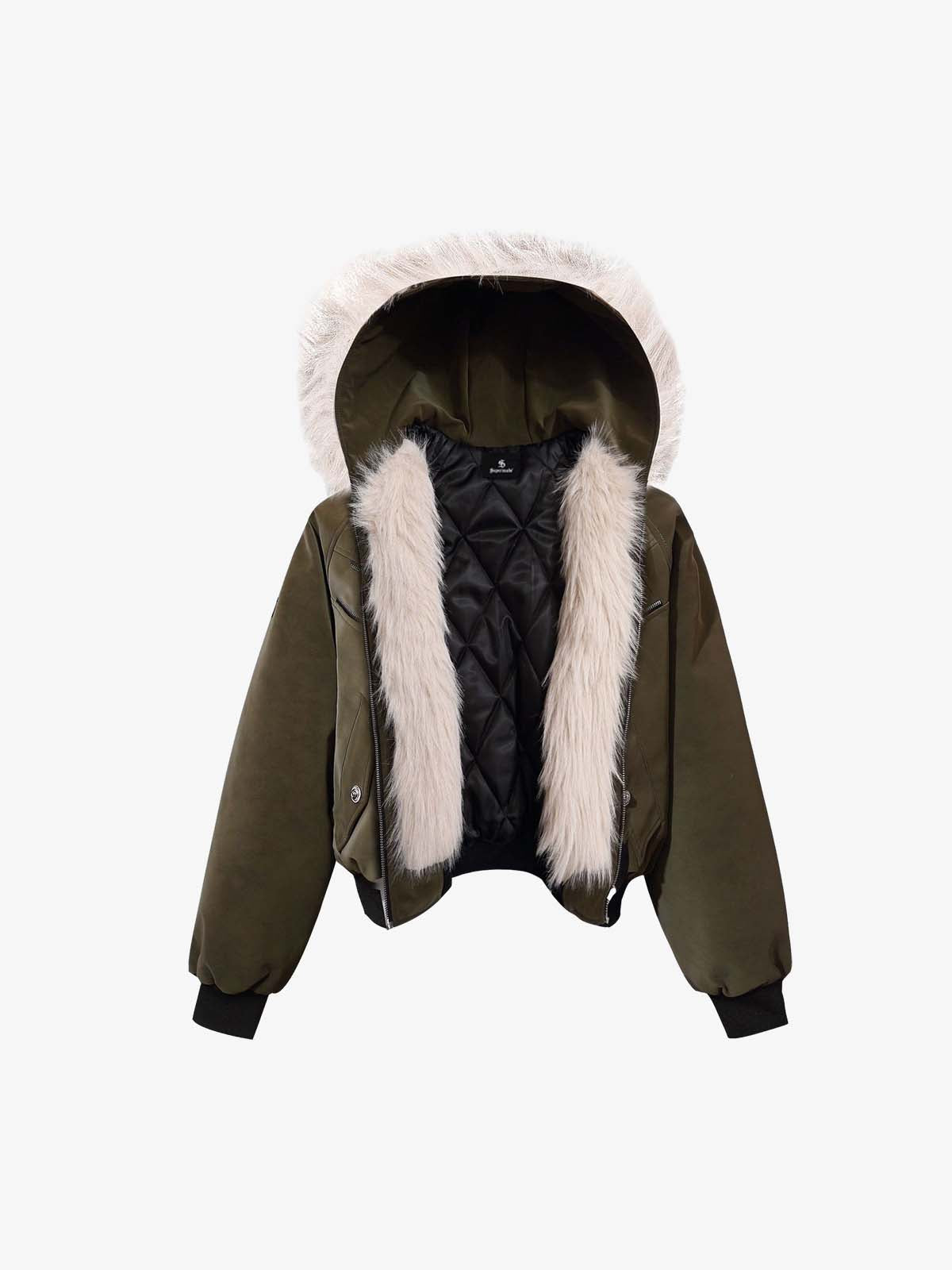 Thesupermade Fur Hooded Zip Up Quilted Jacket - 2510