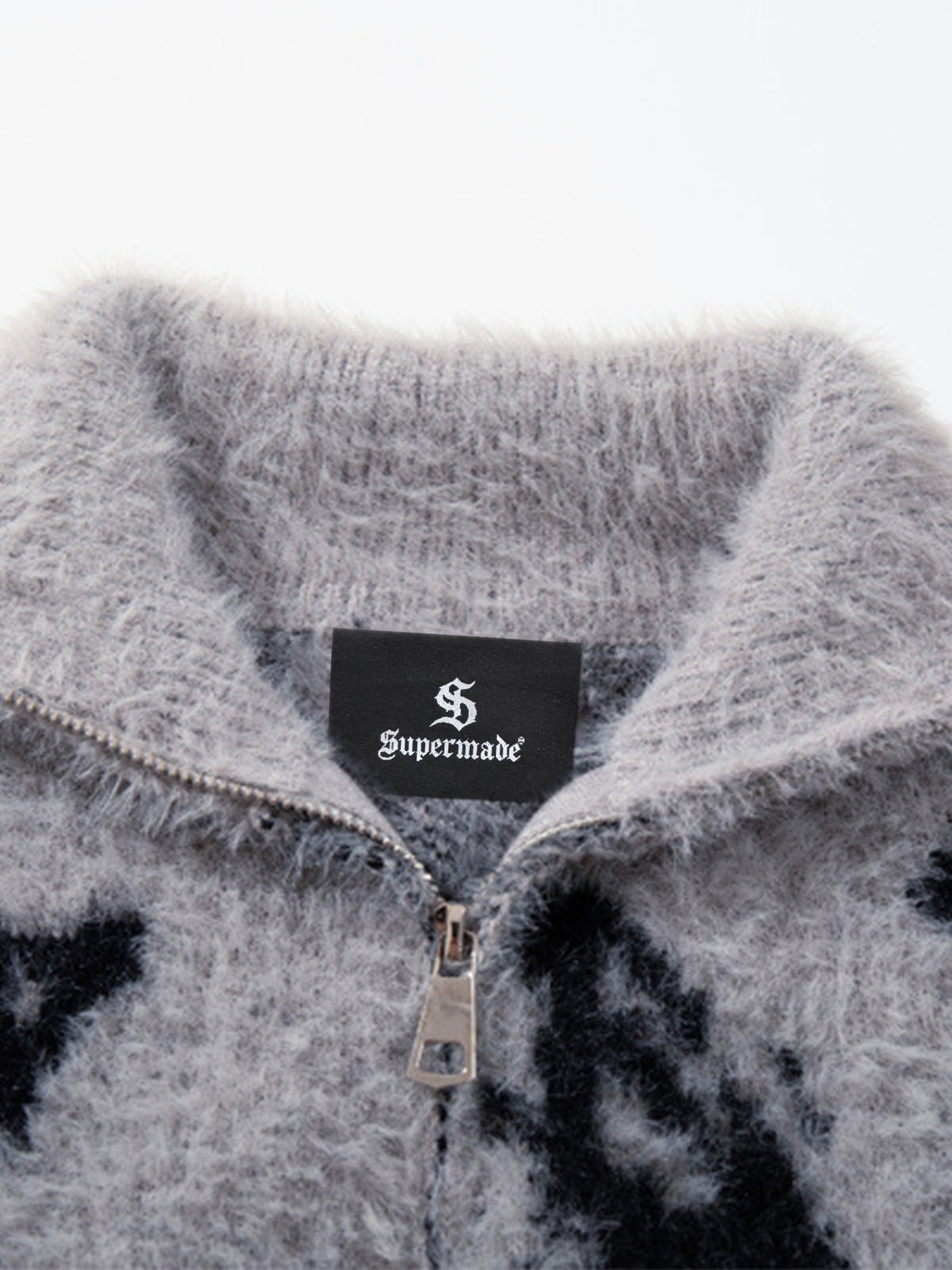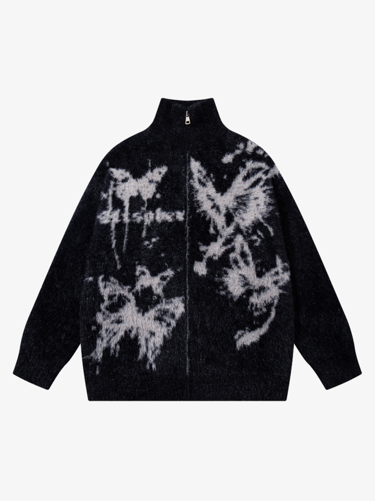 Ink Butterfly Jacquard High-Neck Zip Cardigan Sweater