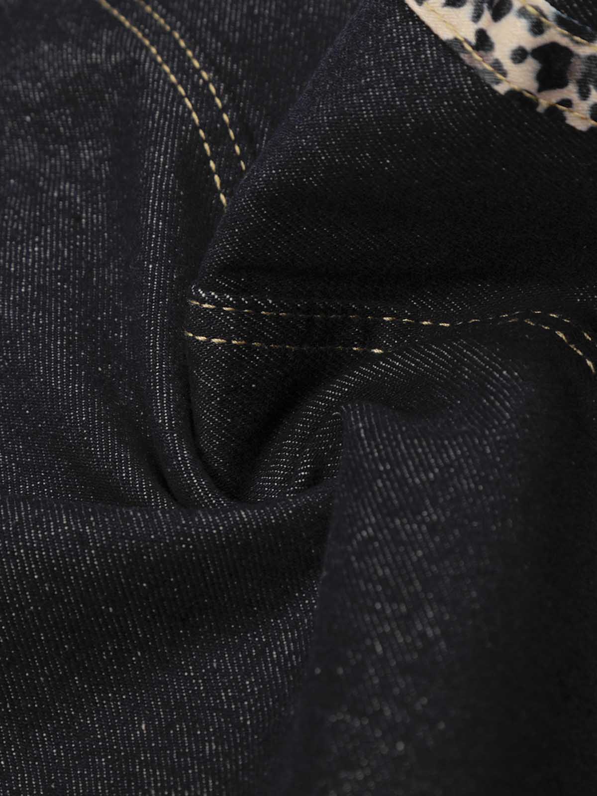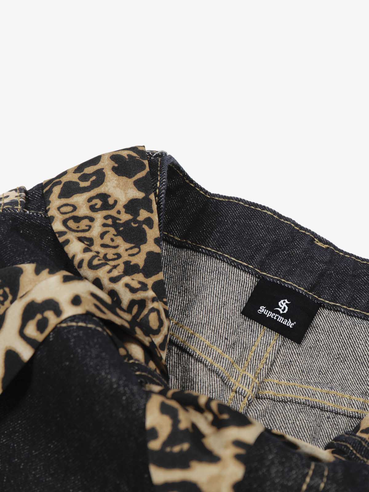 Leopard Side Panel Tie Belt Denim Barrel Jeans