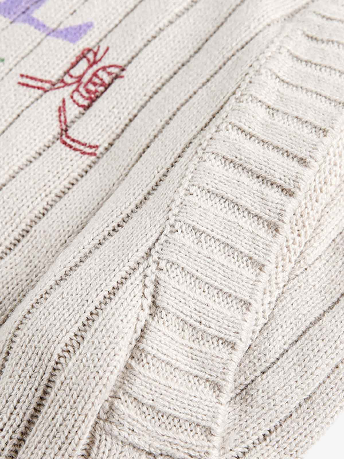 Retro Abstract Print Ribbed Stand Collar Zip-Up Sweater