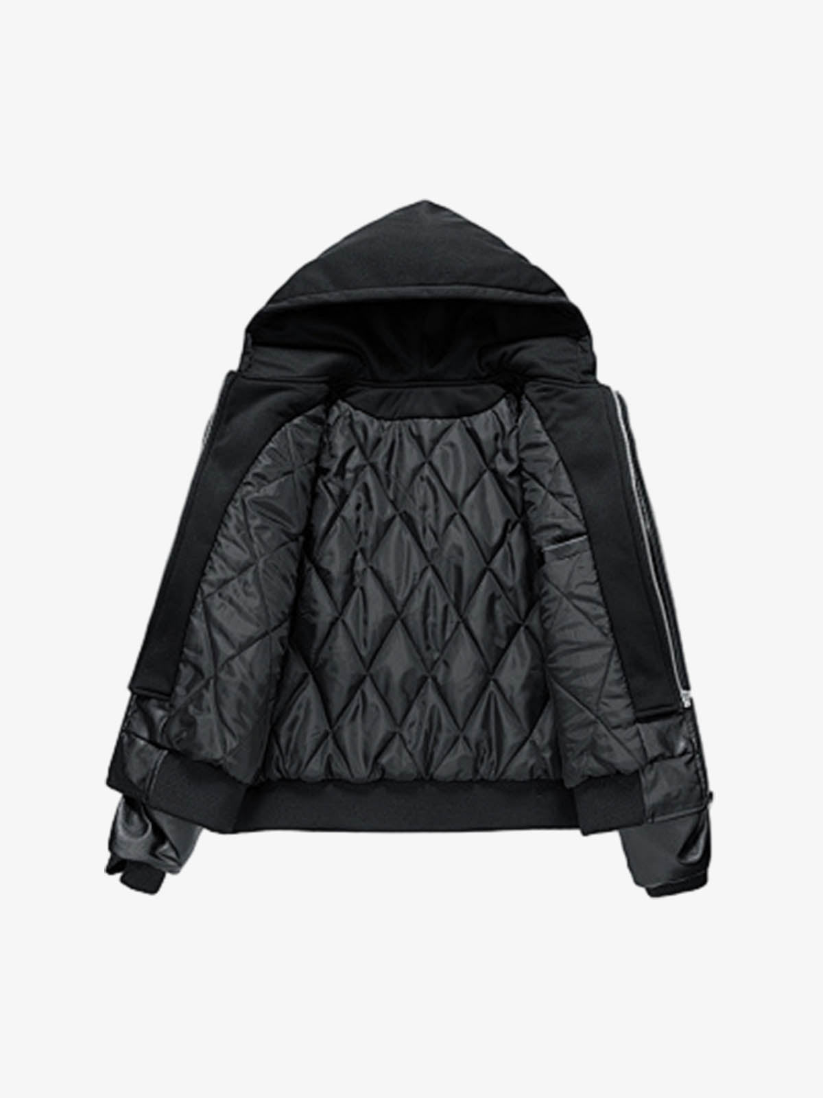 Retro Leather Faux Two-Piece Hooded Padded Bomber Jacket