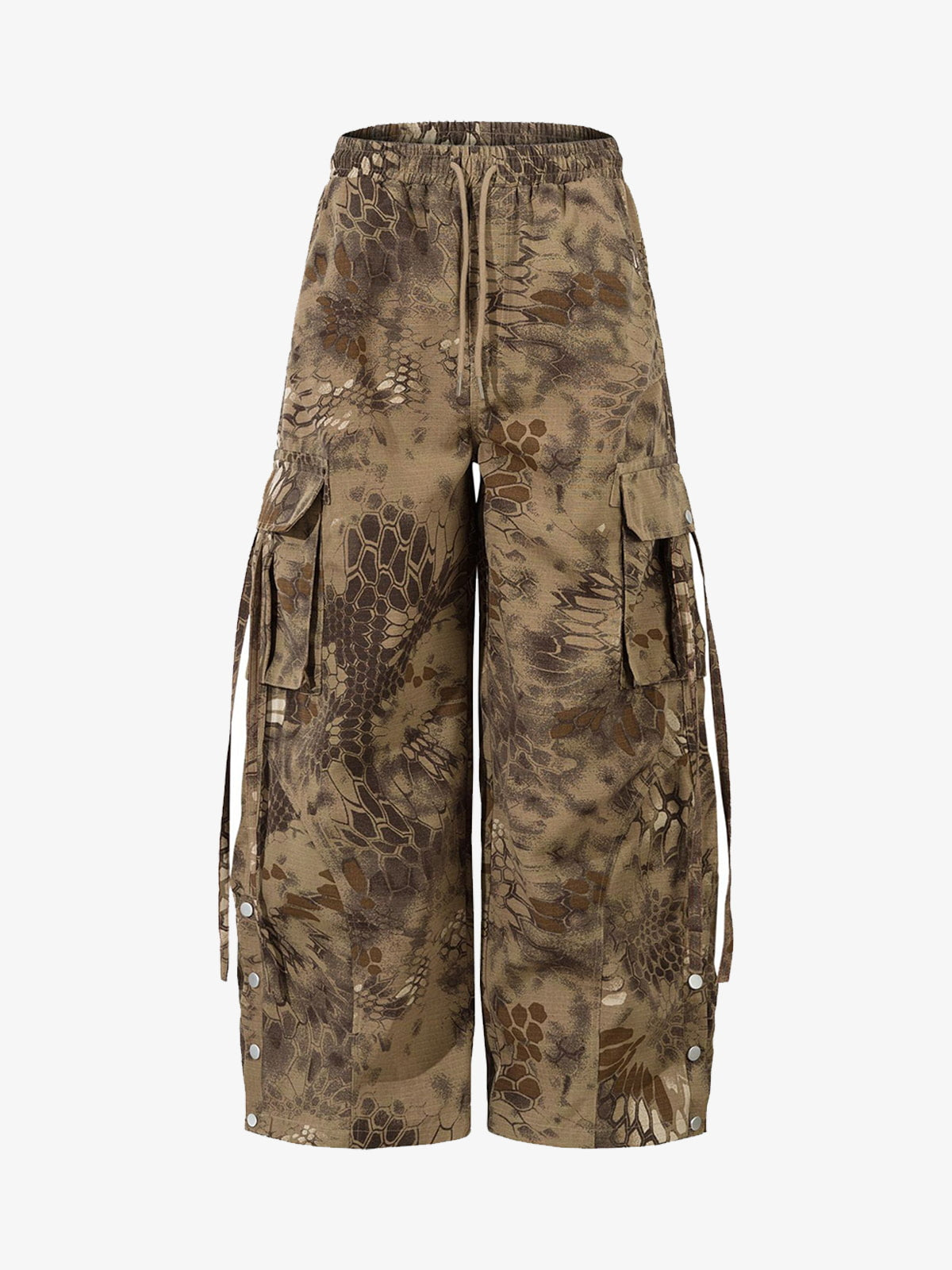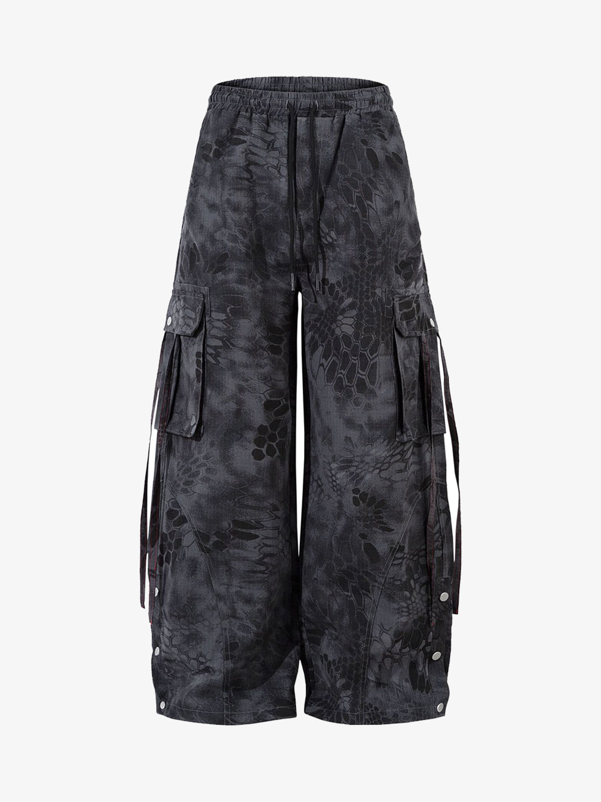 RO Style Multi-Pocket Baggy Flared Pants - 2321