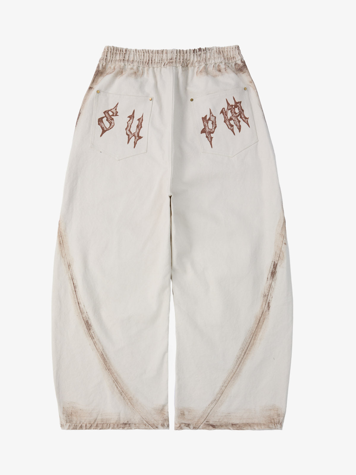 Woven Multi-Pocket Baggy Flared Pants - 2321
