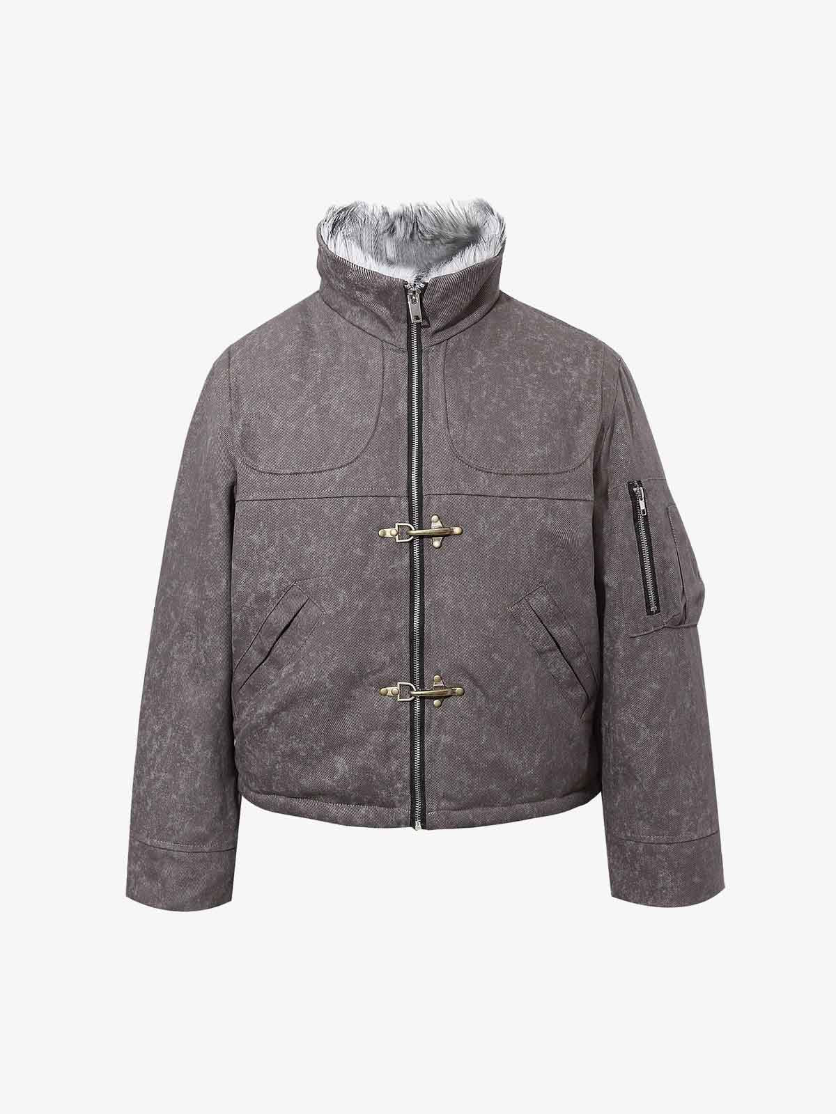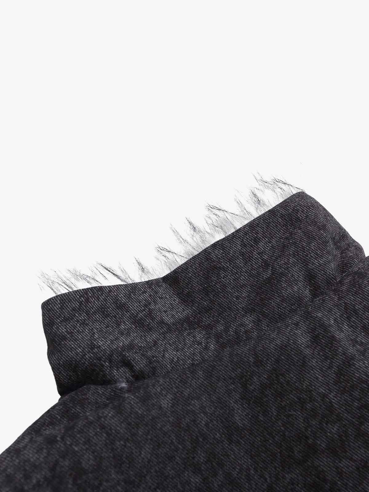 Vintage Metal Buckle Faux Fur Trim Padded Denim Jacket