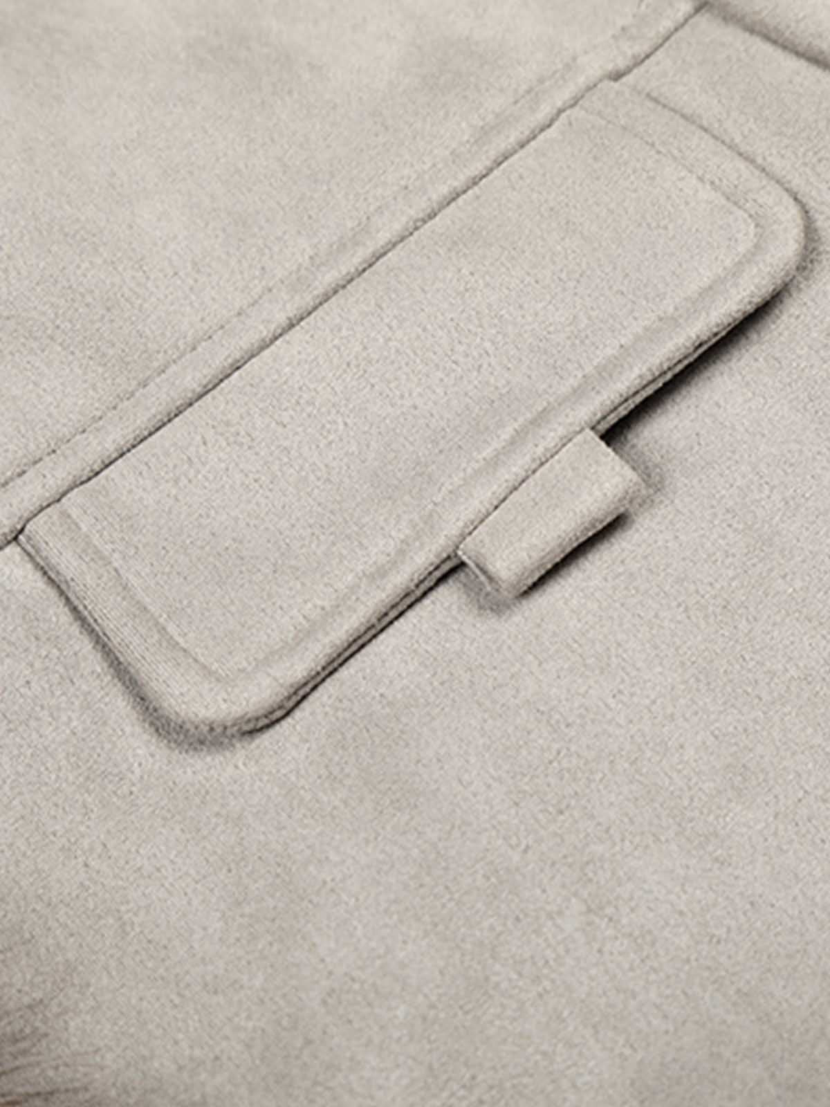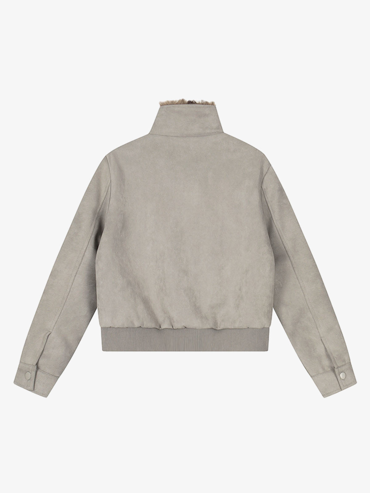 Vintage Suede Faux Fur Lined Buckle Bomber Jacket