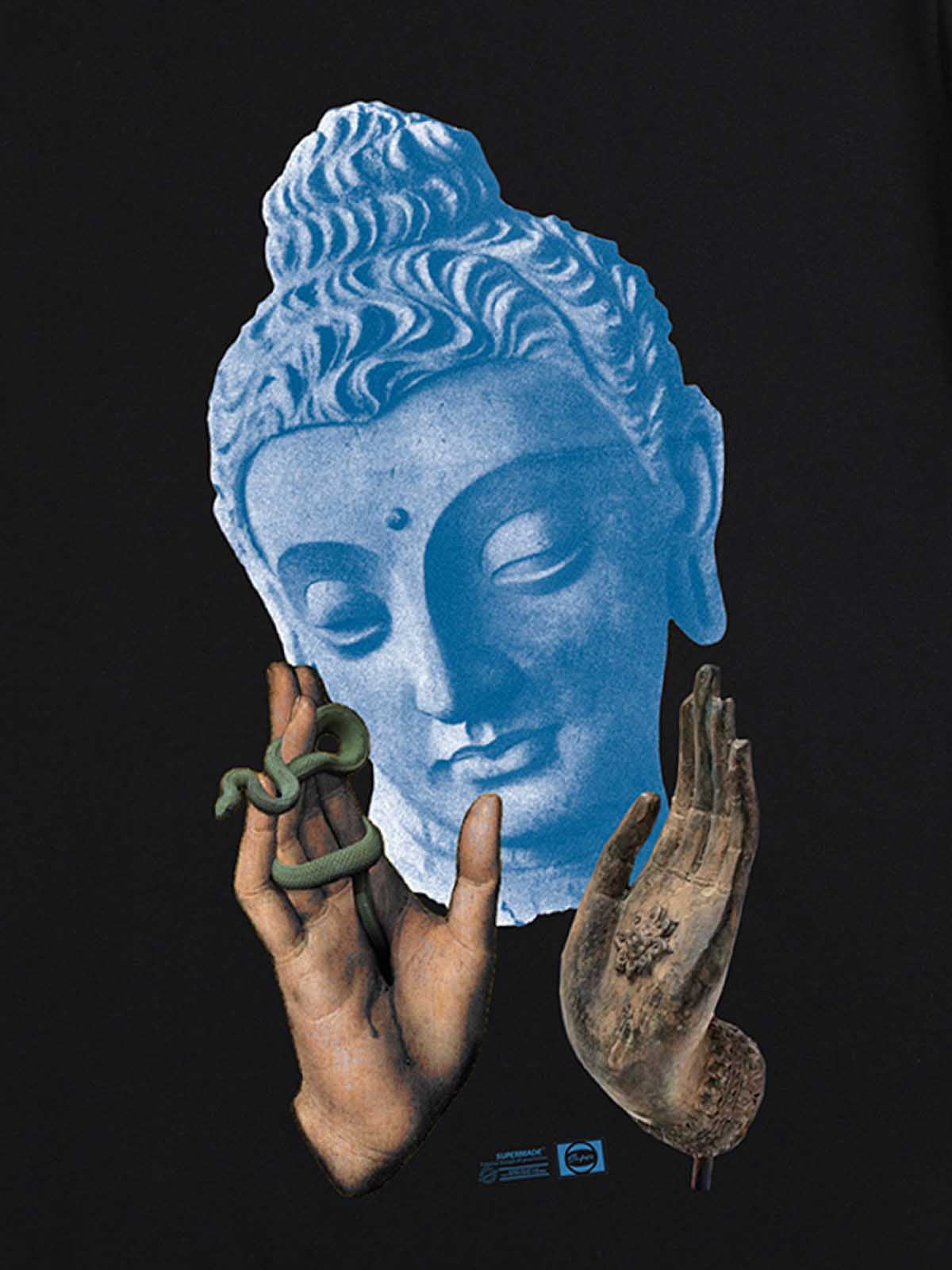 • Design Elements: Central Snake Coiled Around Sword, Splatter Effect Background, Brand Logo Patch, Inspirational Slogan Print
