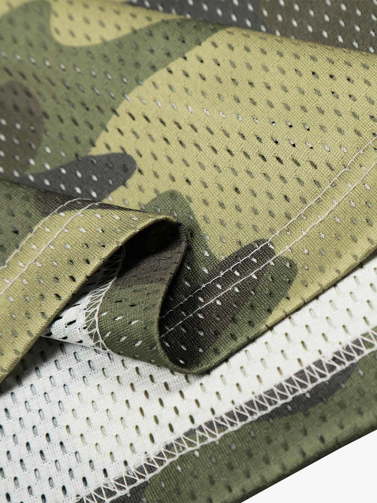 Constructed from lightweight polyester mesh, this jersey T-shirt features a relaxed unisex fit with breathable perforated texture. Contrast camouflage panels combine with oversized number graphics for a bold layered look, while star shoulder inserts add extra visual dimension and streetwear attitude.