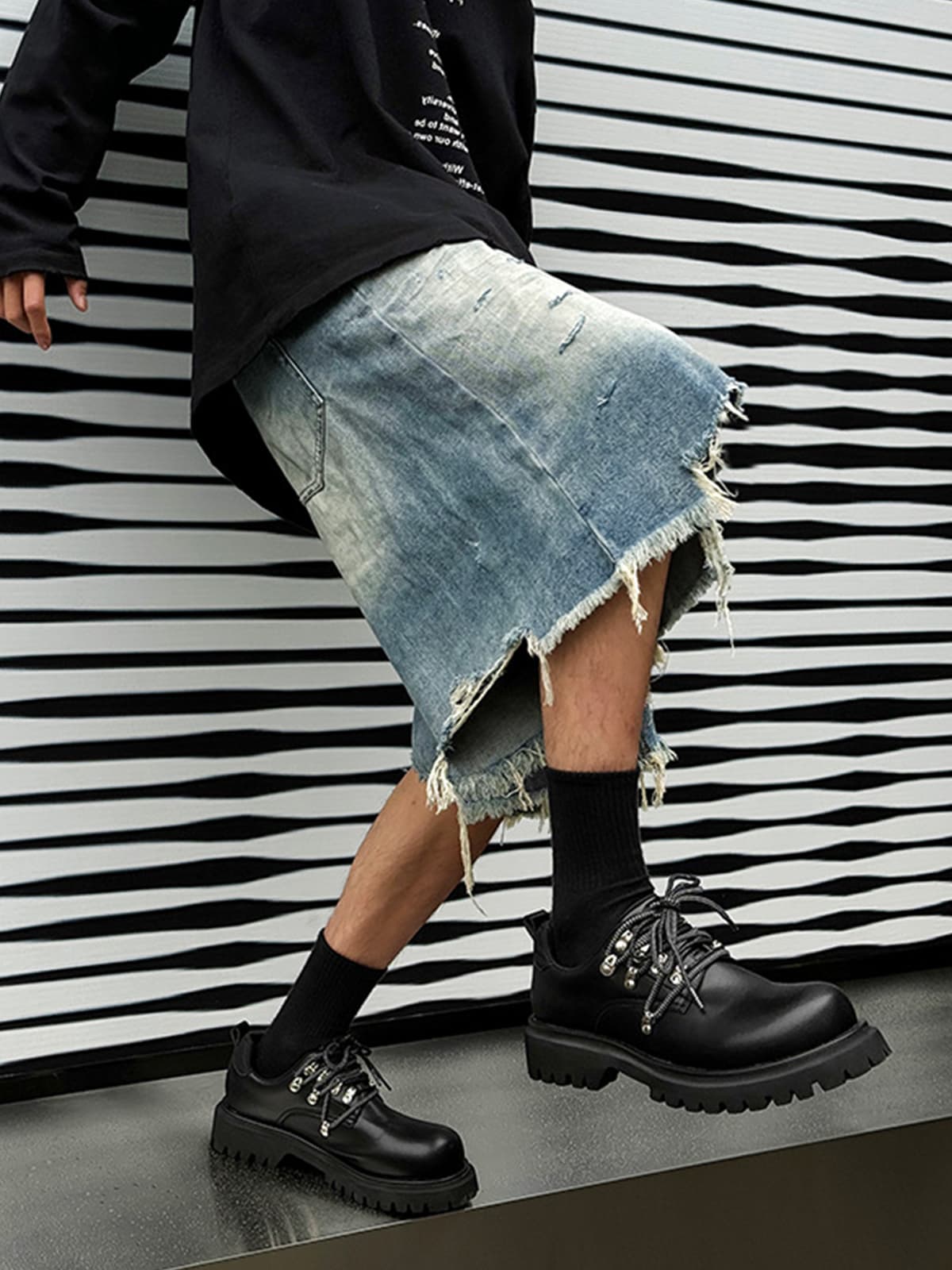Chunky Rivet Street Style Round Toe Leather Derby Shoes