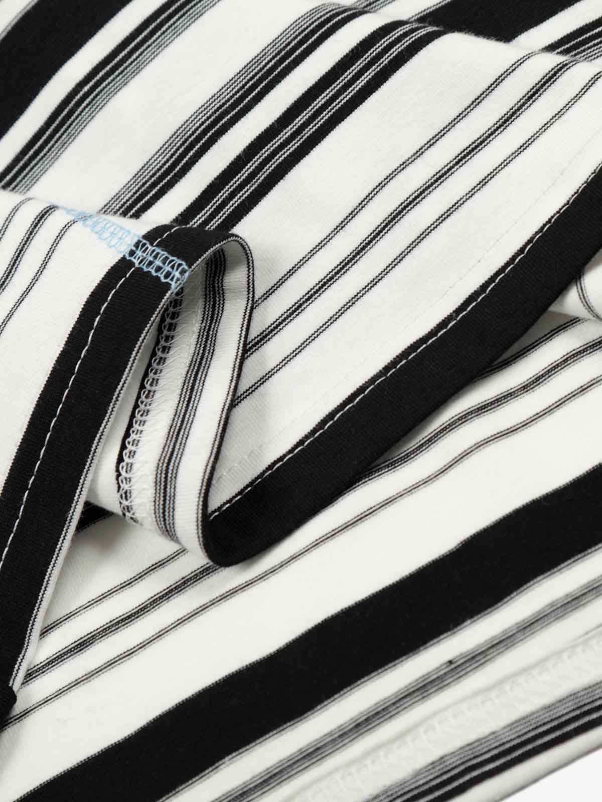 • Detail Features: Horizontal Stripe Pattern, Front Graphic Print in Gothic Style, Subtle Text Embellishment Below