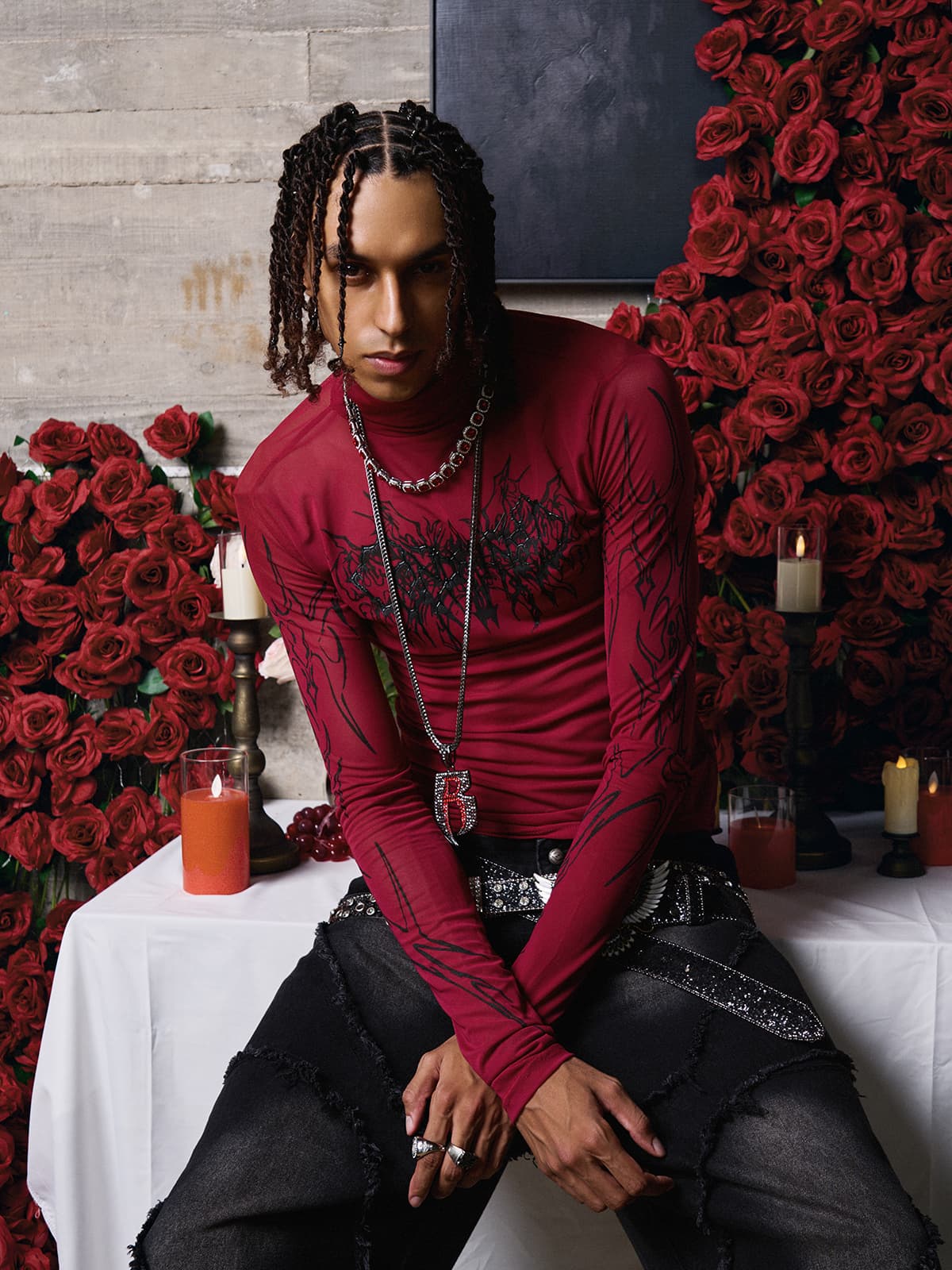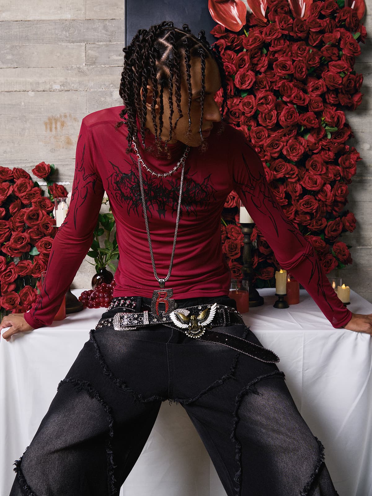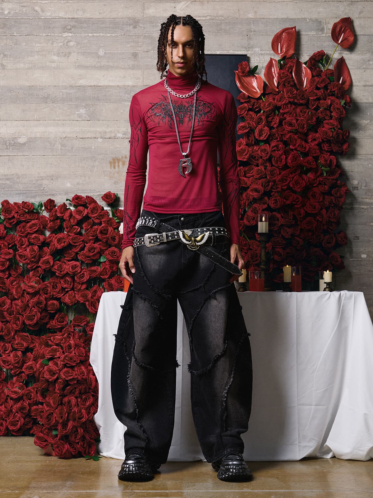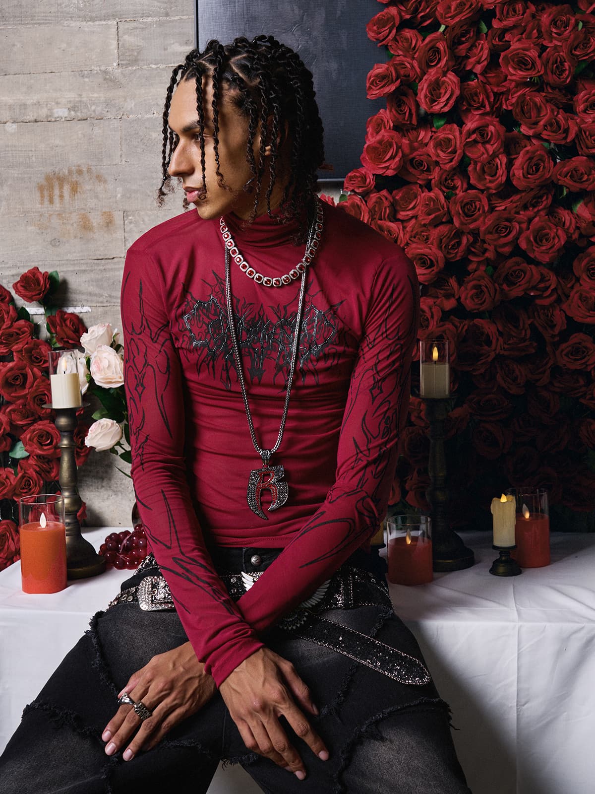 Dark Style Printed Slim Mesh Long Sleeves T-Shirt