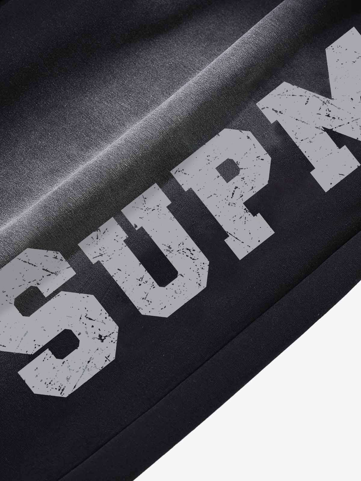 • Design Elements: Gradient print on the side, vertical text design, drawstring waistband
