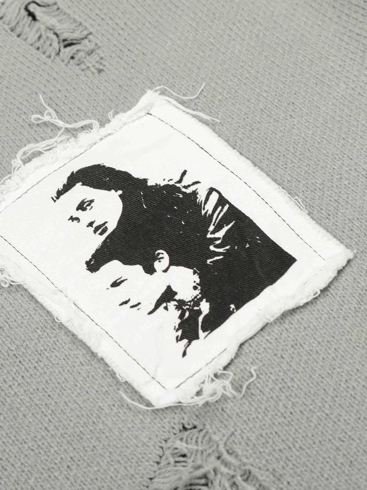 Distressed Photo Patch Oversized Knit Sweater