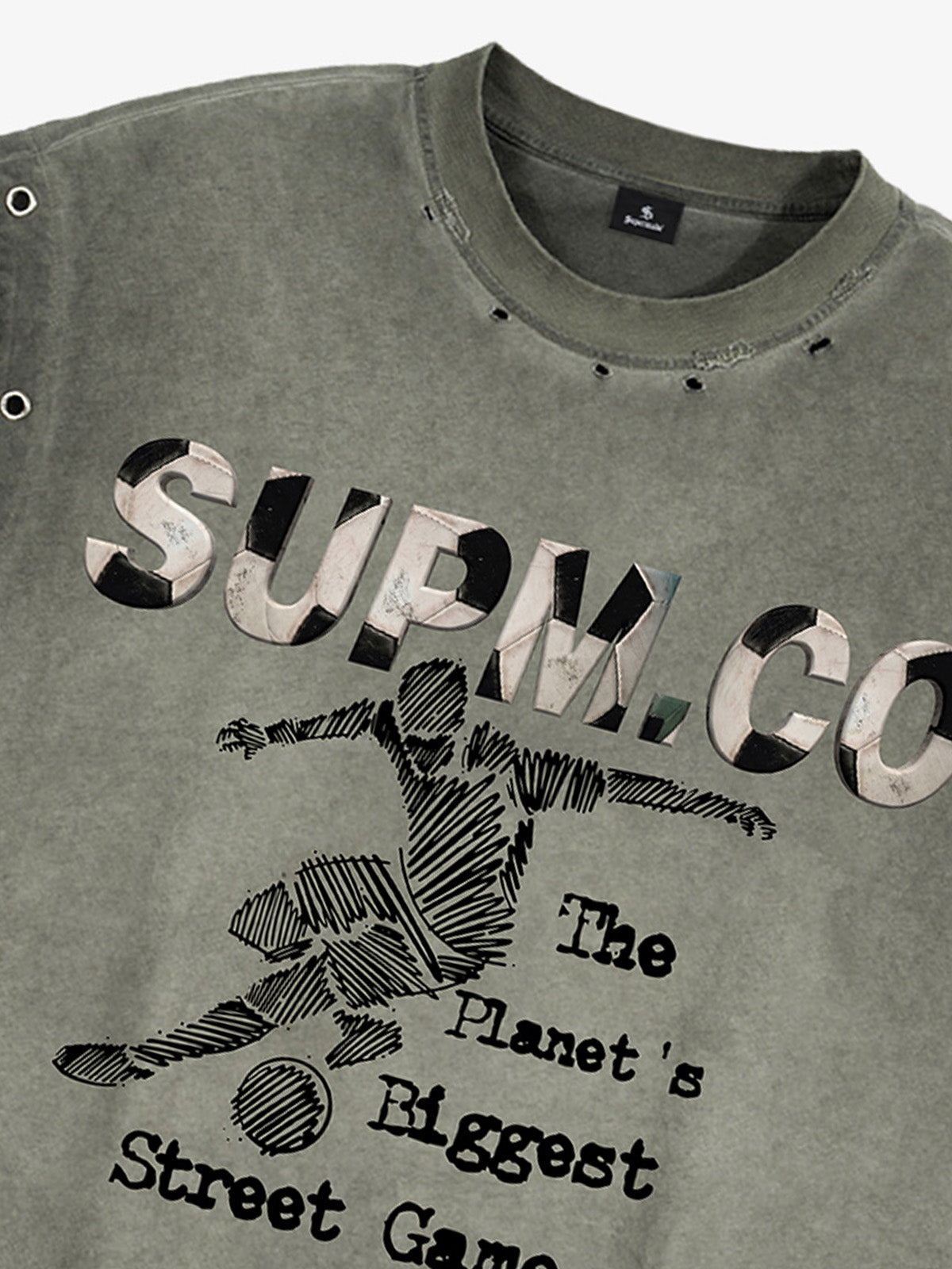 Distressed "SUPM.CO" Soccer Graphic Sleeveless T-Shirt