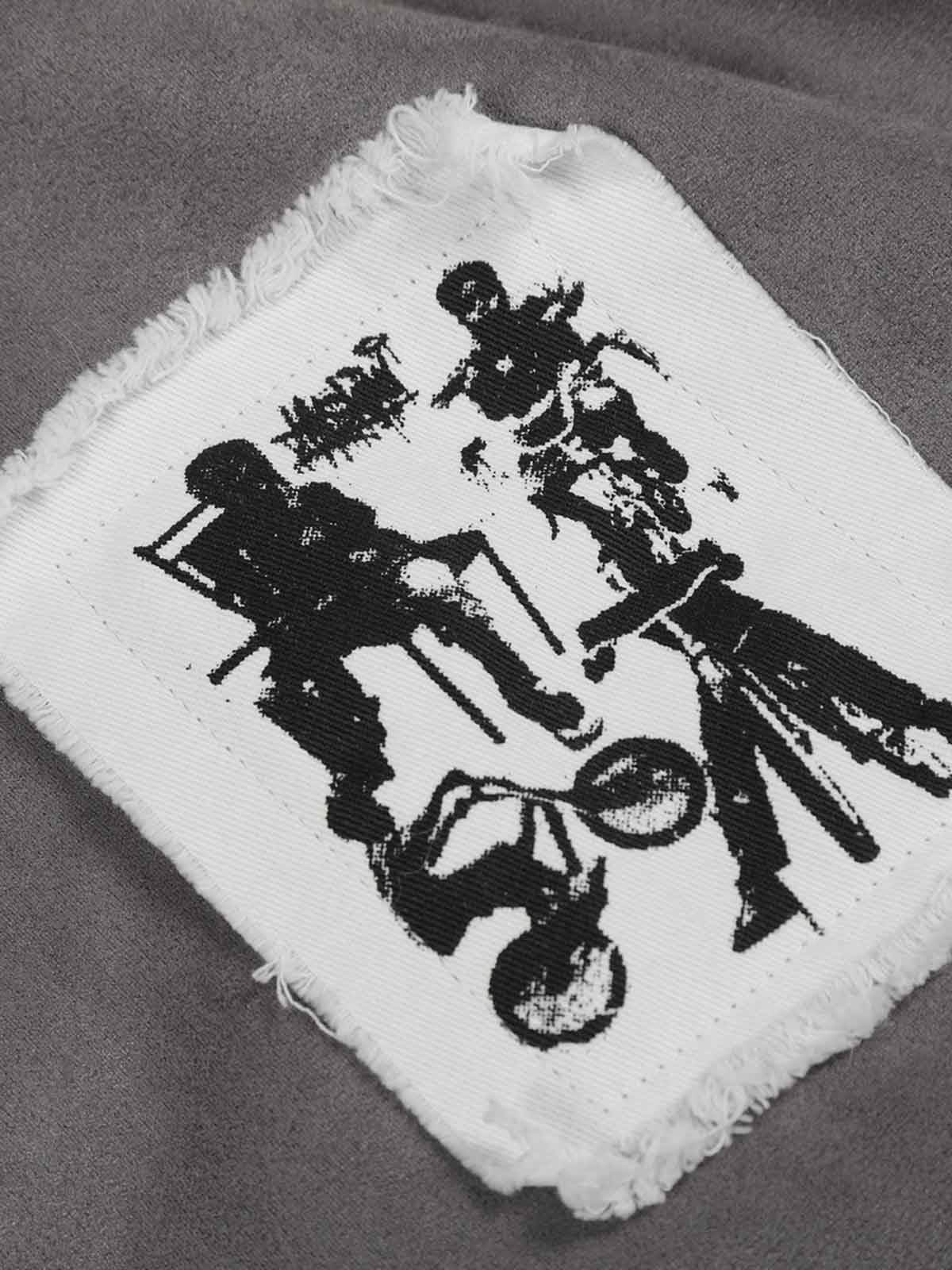 • Details: Multiple Patches with Graphic Artwork, Front Button Closure, Zippered Sleeve Pocket, Ribbed Cuffs and Hem
