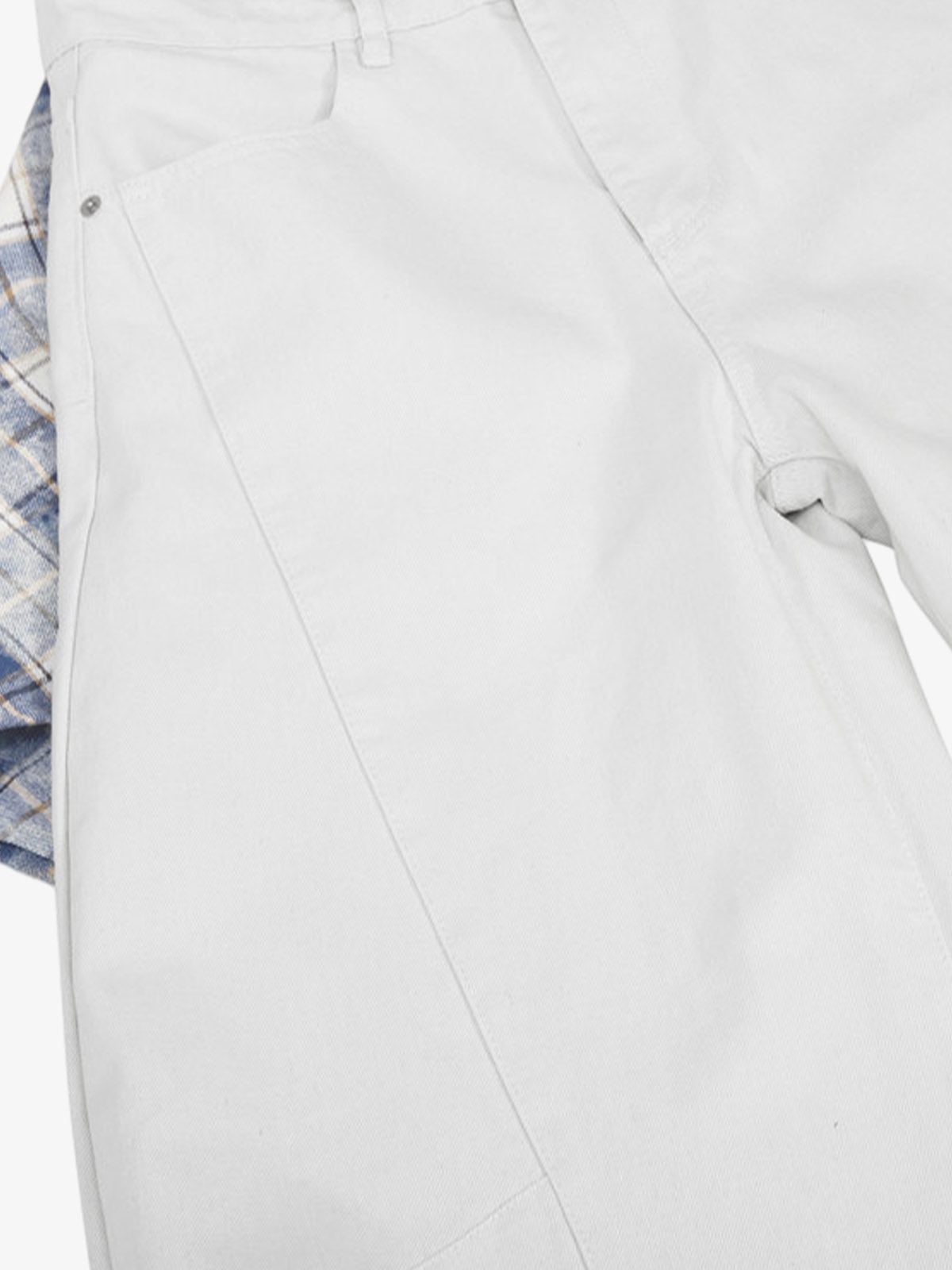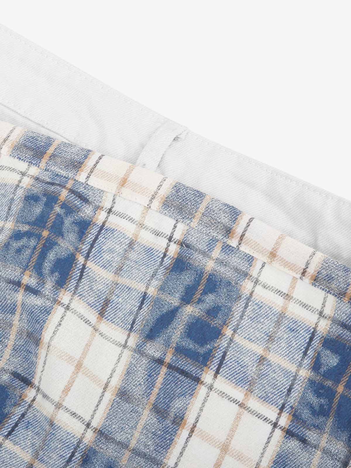 Layered Plaid Shirt-Tied Waist Barrel Jeans